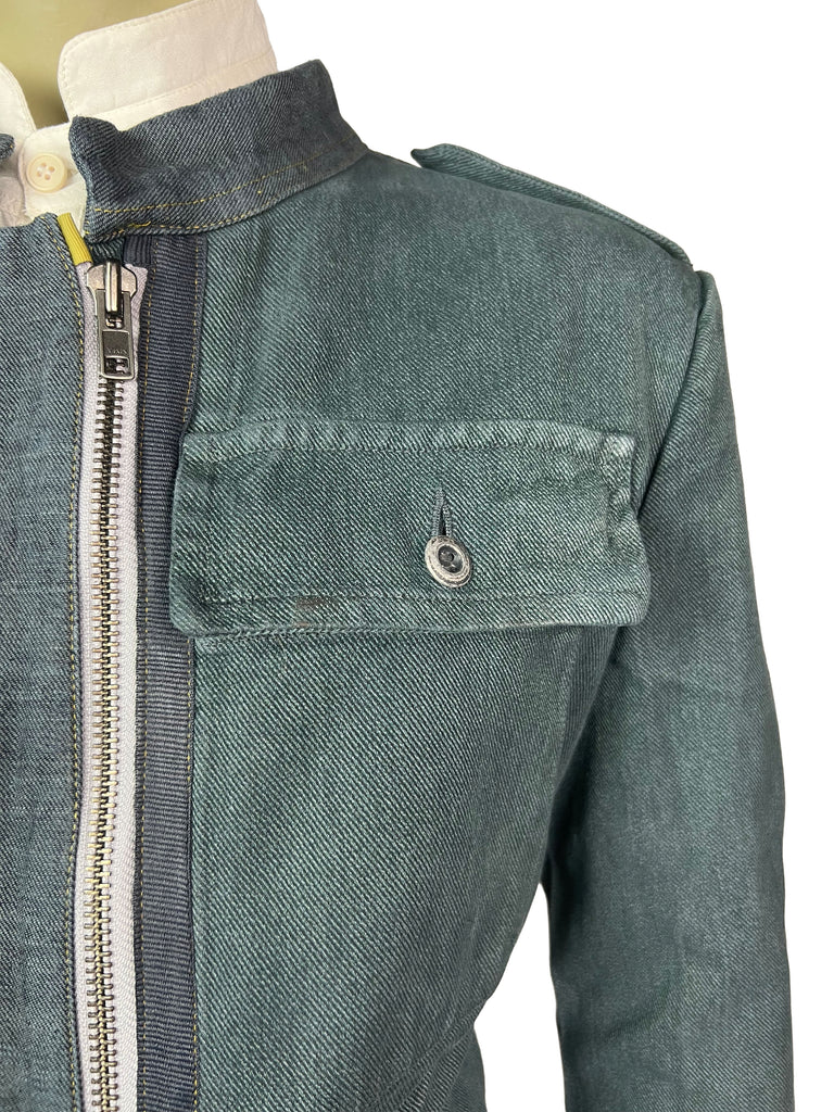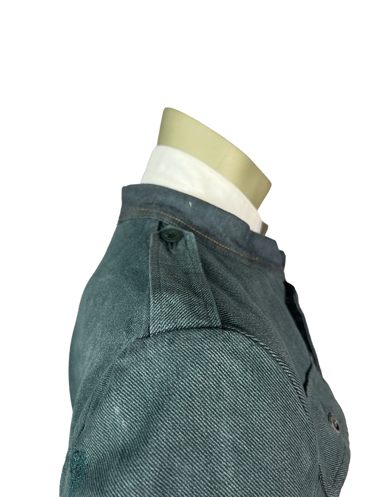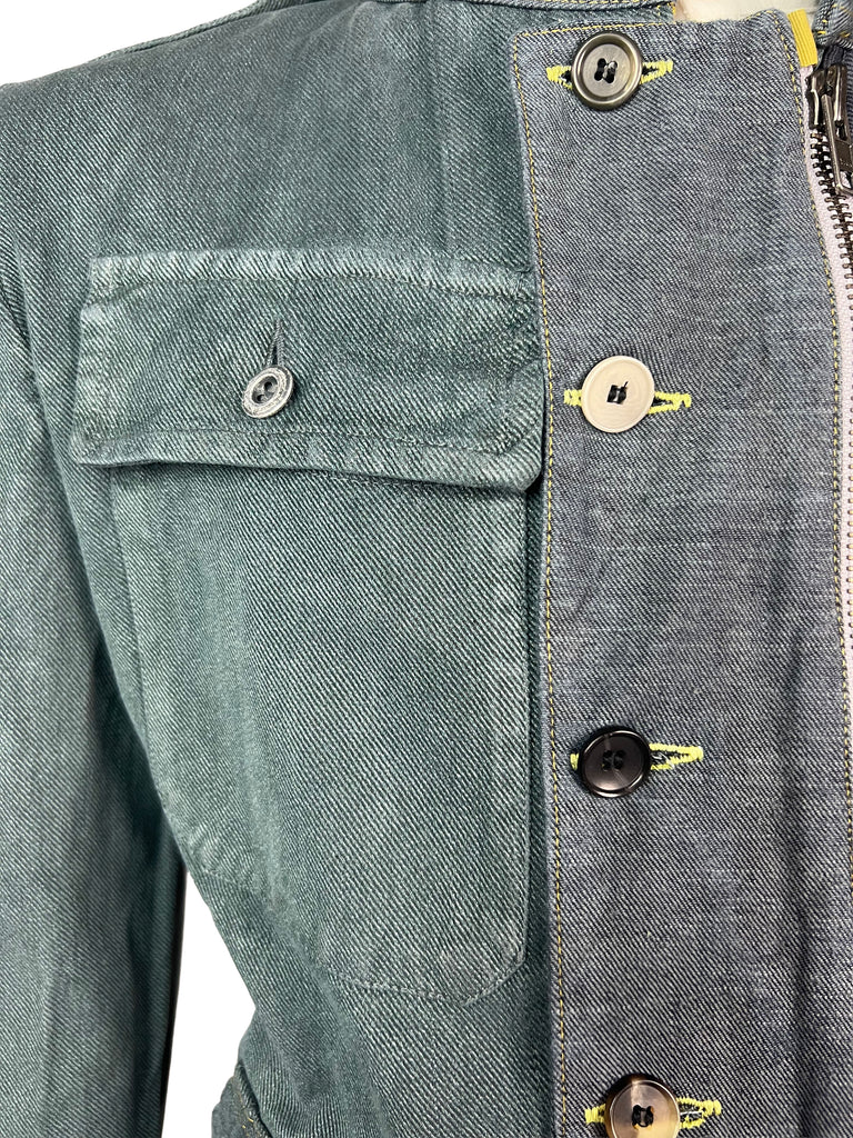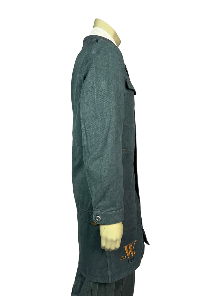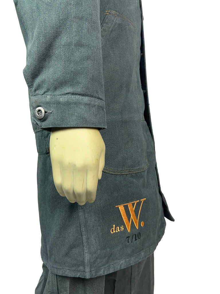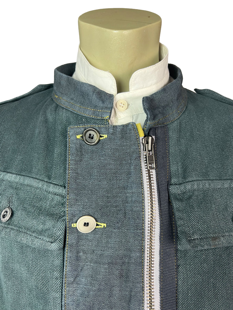The Meridian Coat No. 7 is fully crafted from sturdy, vintage-washed denim. Its elongated silhouette is accentuated by a bold two-way zipper, contrasting yellow trim, and asymmetrically placed buttons that highlight the coat’s utilitarian spirit. Shoulder flaps, flap chest pockets, and clean seam lines give it a structured, yet versatile look.
