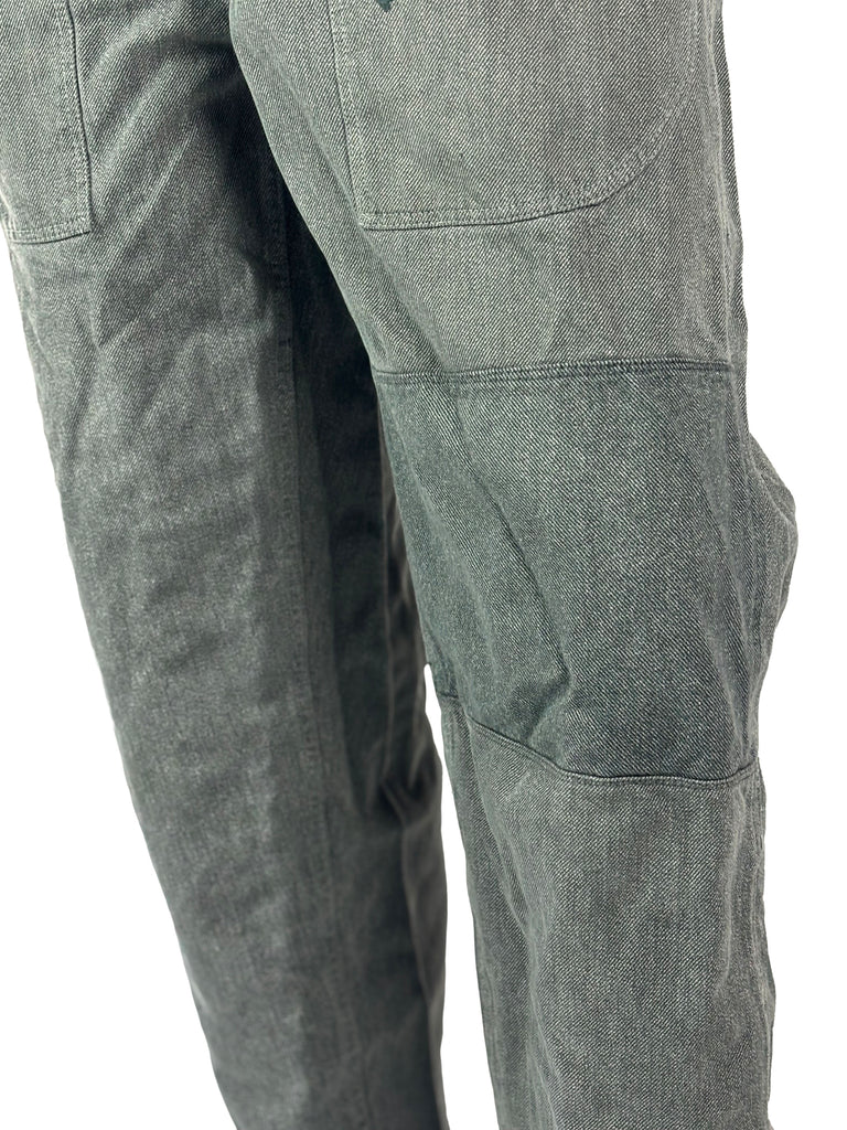 Straight cut with side cargo pocket, distinctive button fly, and relaxed drape.