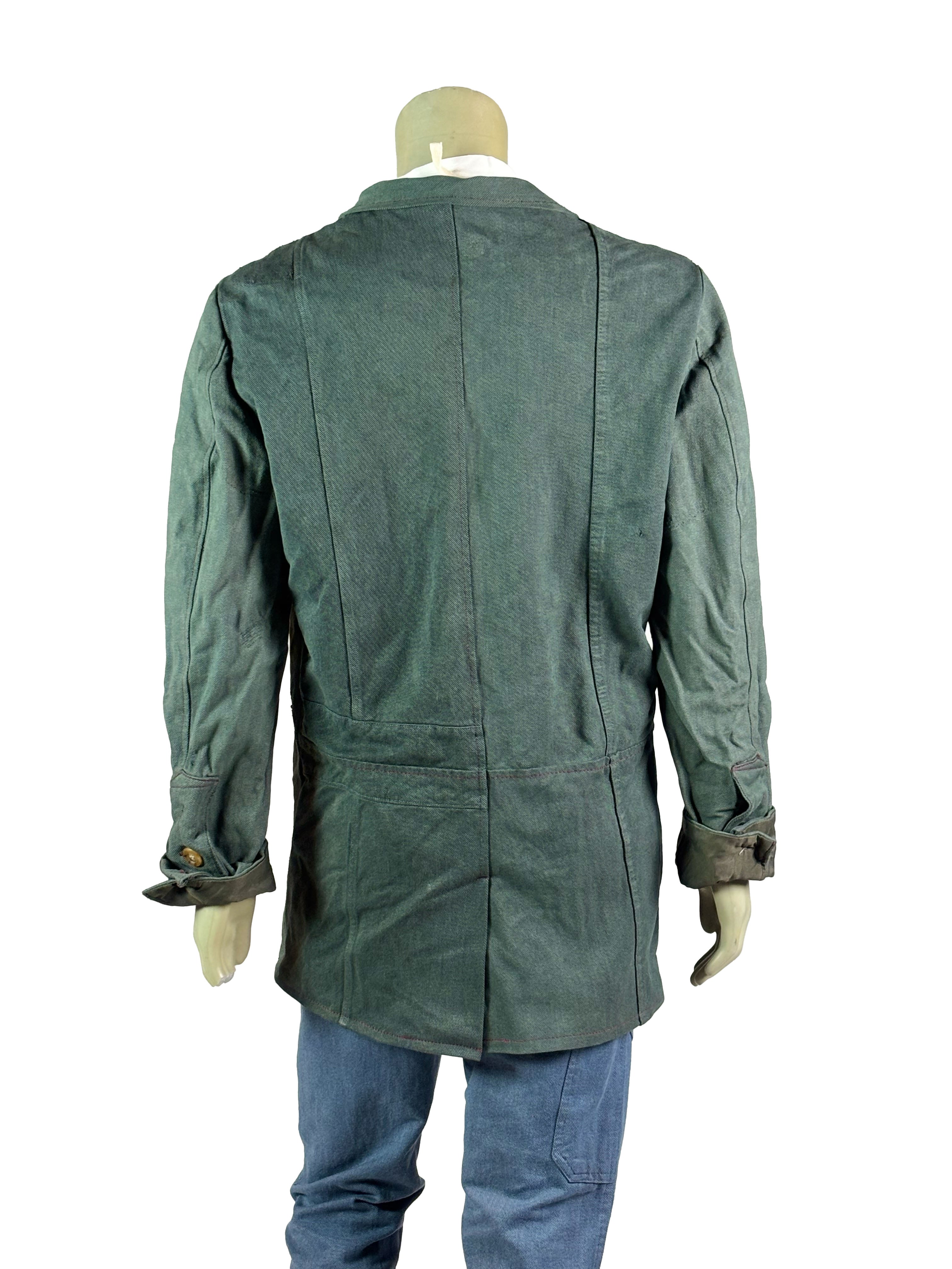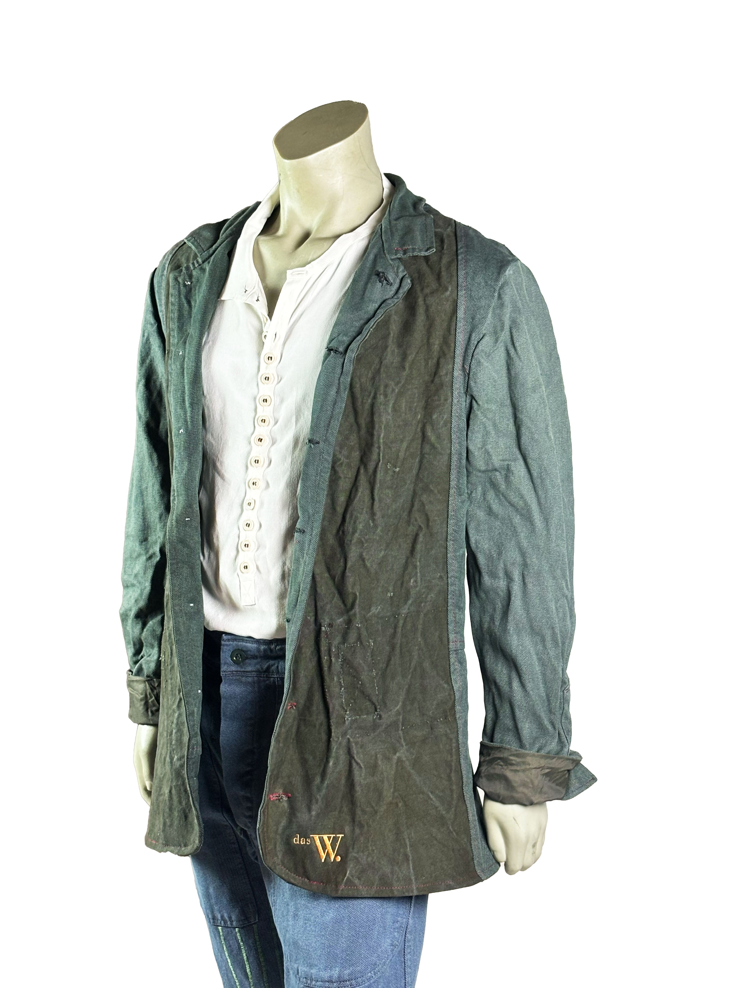Subtle irregularities, natural wear marks and visible seams are intentionally preserved and form the visual identity of the piece. The jacket follows a reduced, functional construction with a relaxed silhouette, allowing the materials to shape the garment naturally over time. Without adjustable elements, the fit remains authentic and true to the original cut.
