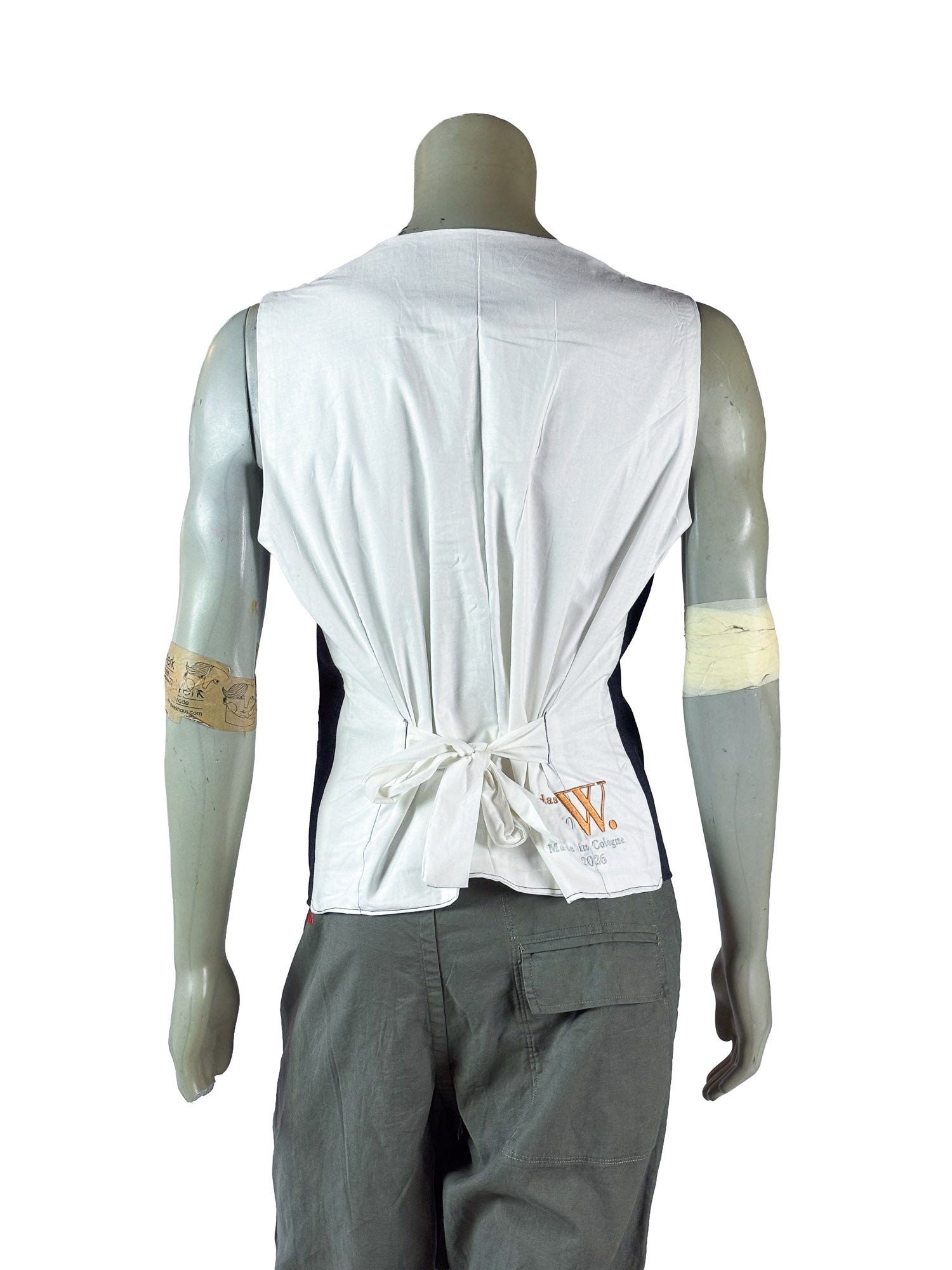 A cleanly integrated front pocket on the left side adds functionality while maintaining the minimal design language. The back of the vest is constructed in white fabric and features an adjustable tie detail that allows the fit to be subtly refined. The embroidered Das Werkhaus signature and numbering on the back mark the vest as 1 of 10 from the Core Vest Collection.