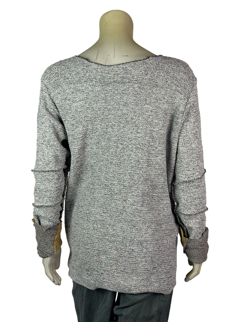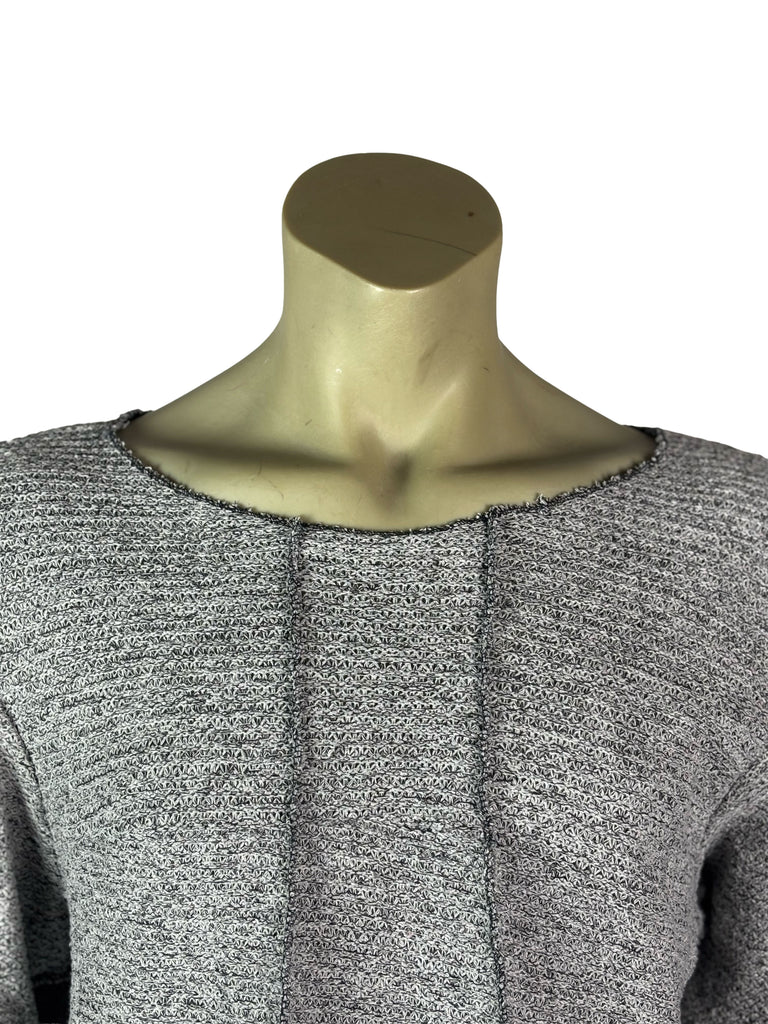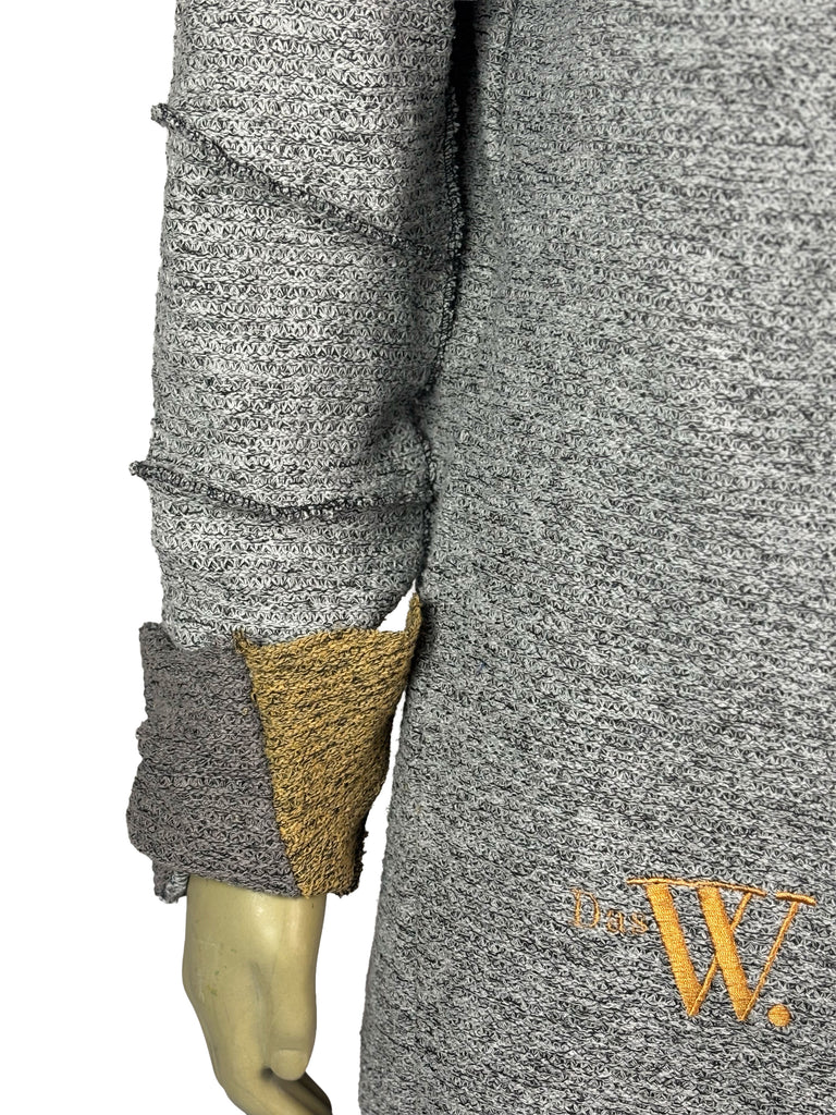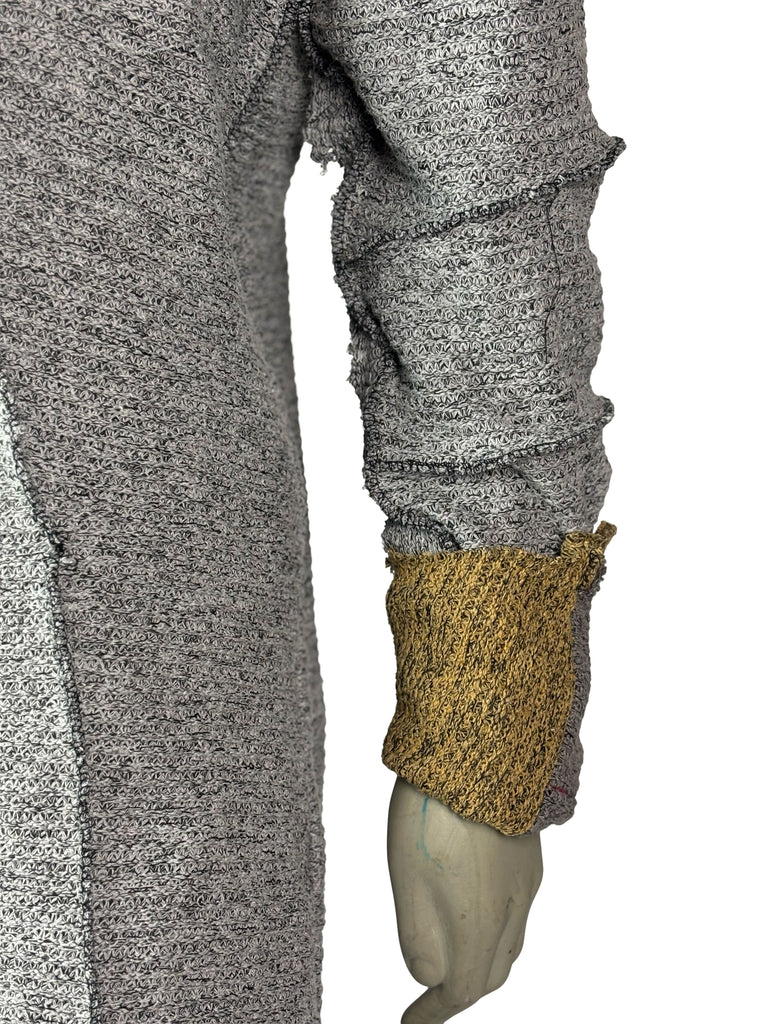 Raw edges and exposed stitching emphasize the handcrafted process, while subtle color variations add individuality within the series. With its relaxed fit and flexible material, the sweater offers both ease of movement and a contemporary, experimental look.