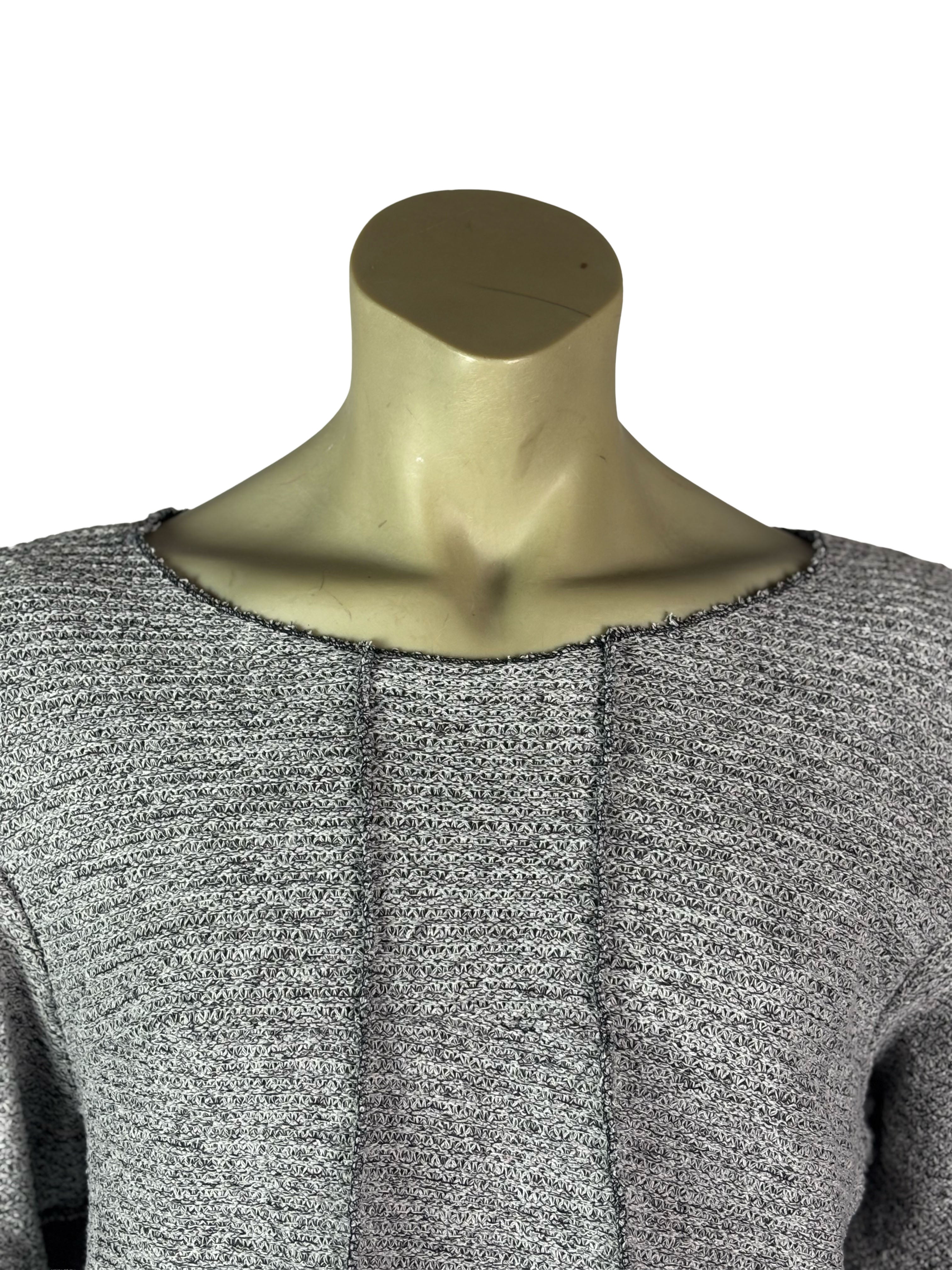 Crafted from a soft, stretchable knit fabric, this sweater combines comfort with distinctive design. The use of an overlock machine creates bold seam patterns across the surface, giving each piece its own rhythm and structure.