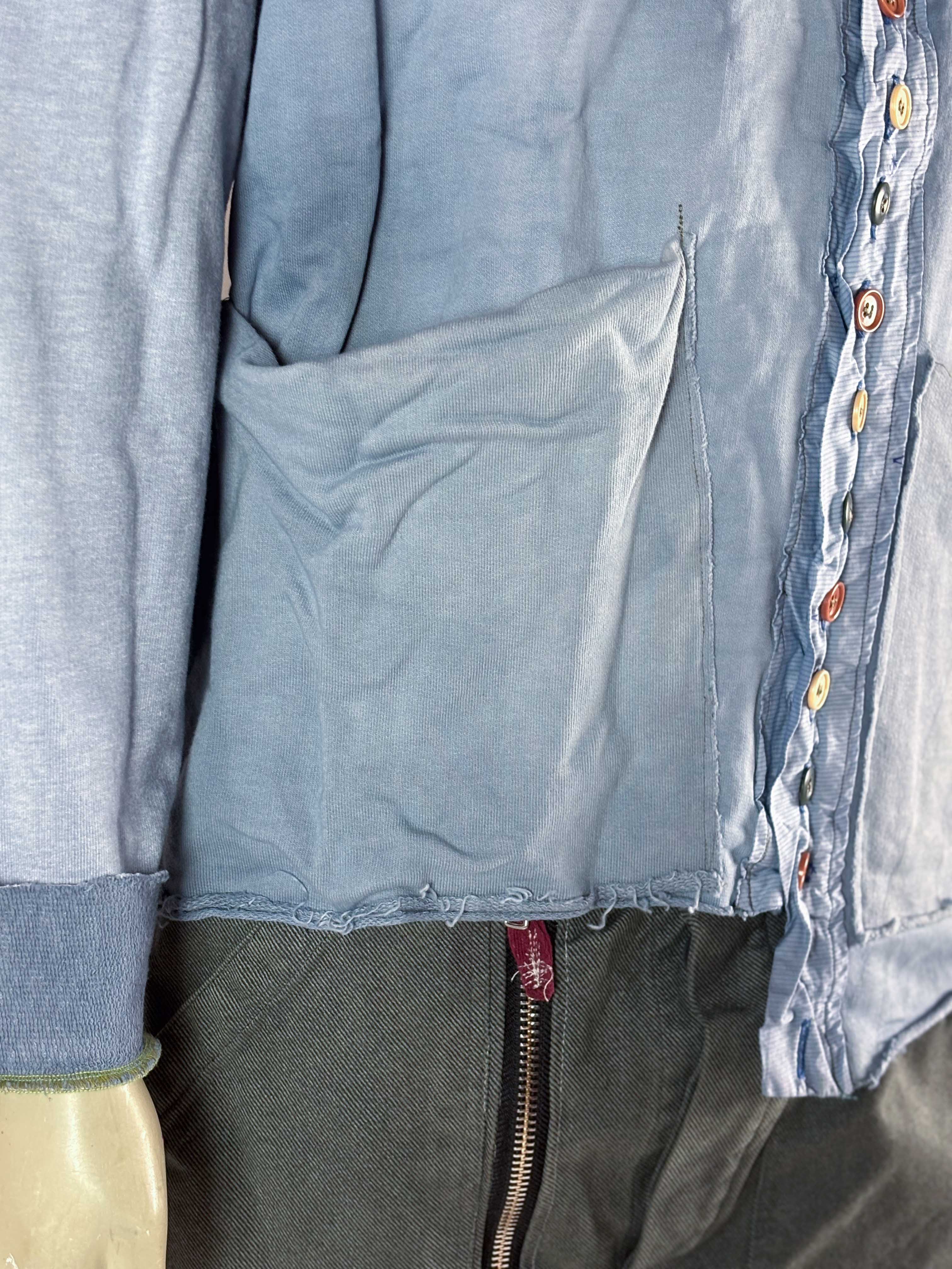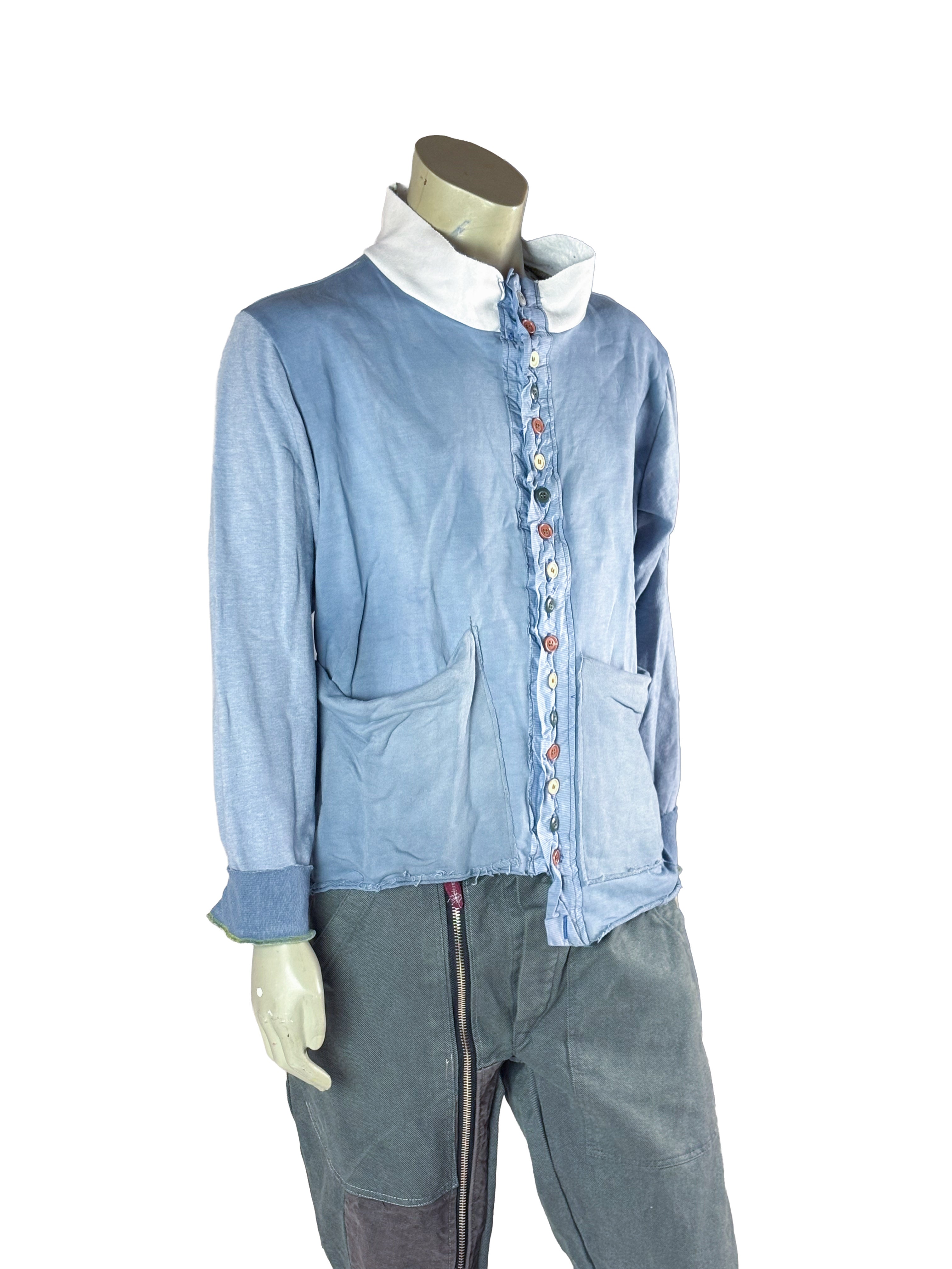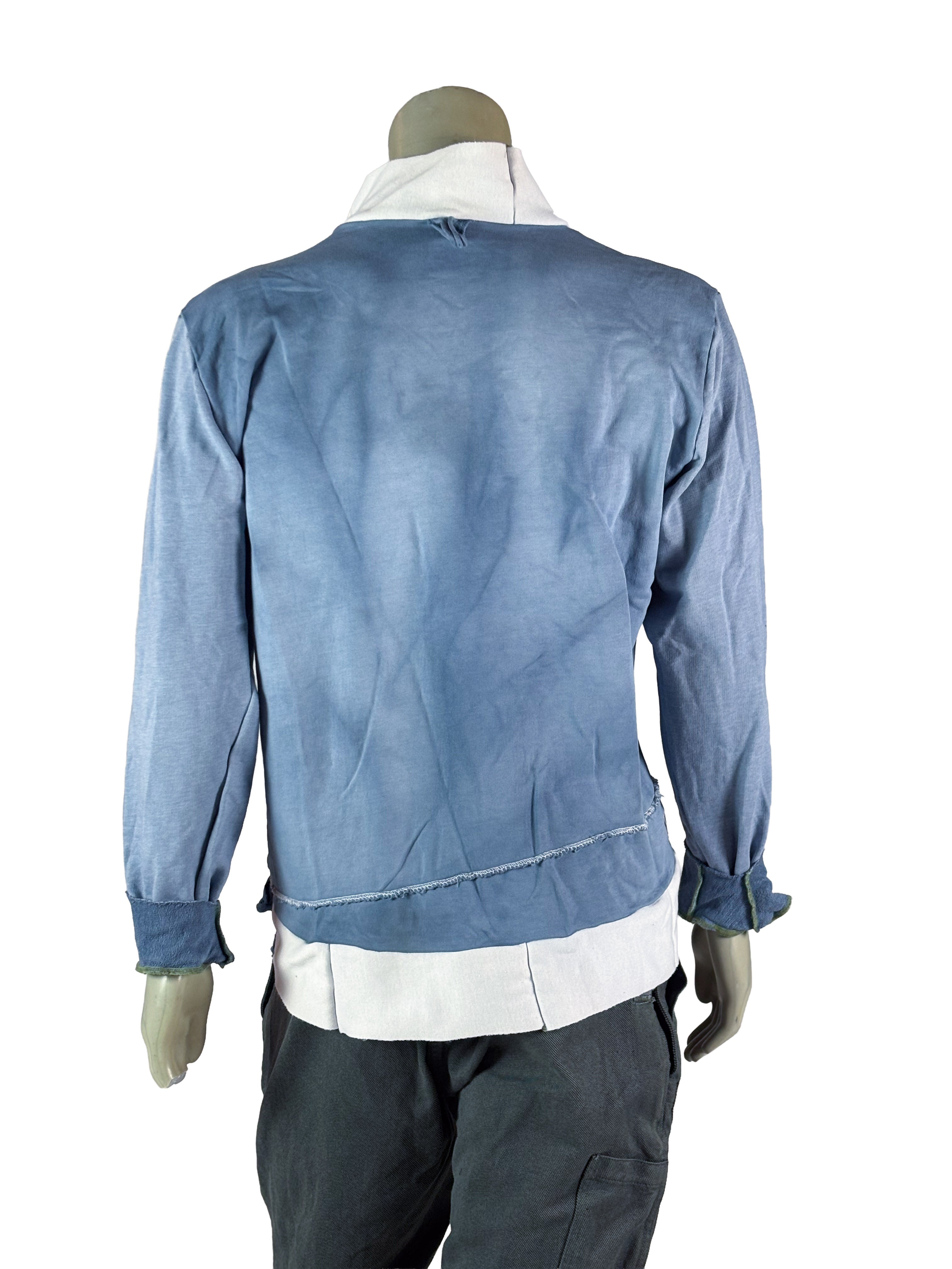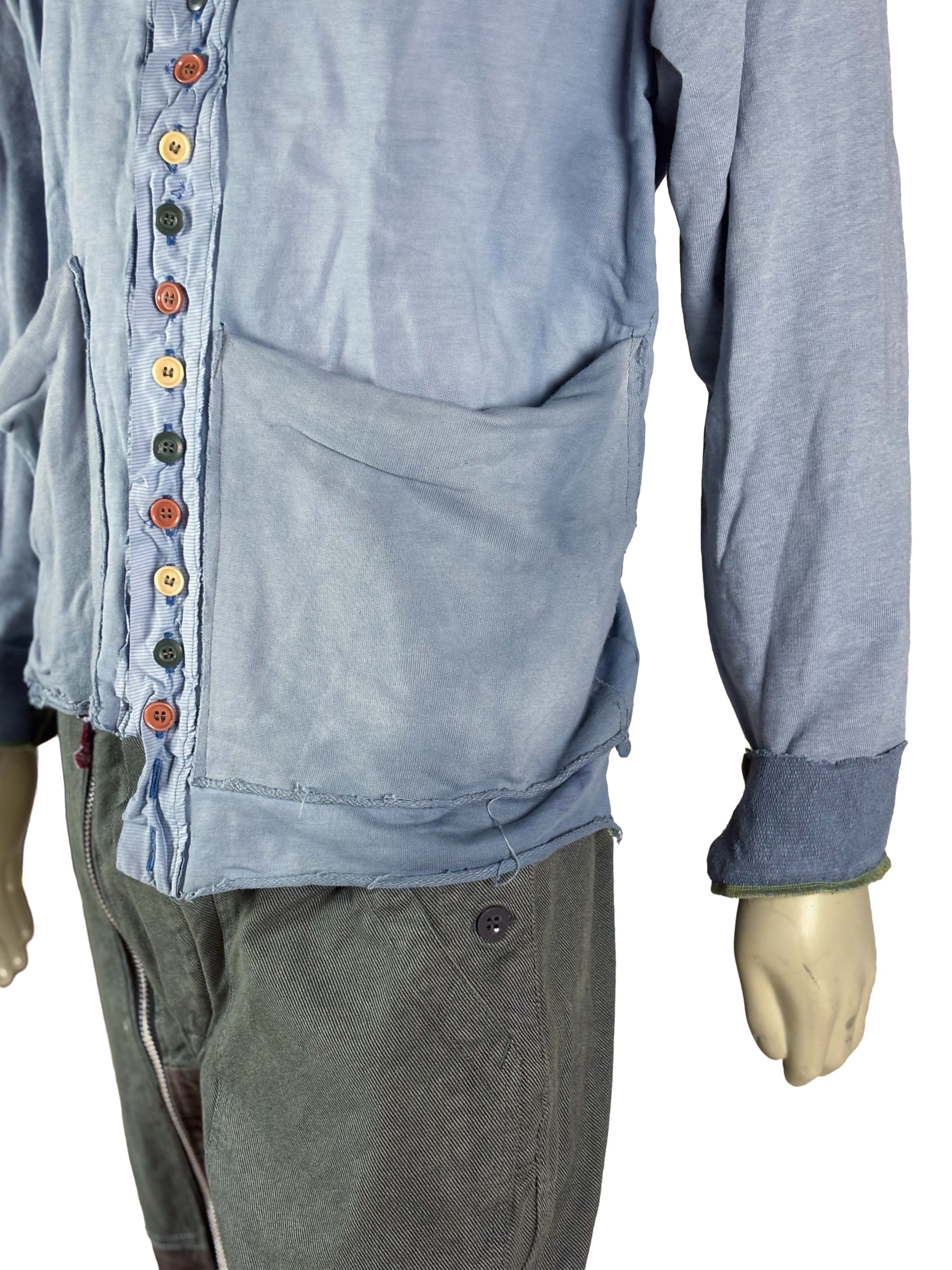 Color gradients, stitched button plackets and mixed textures give every piece its own personality while maintaining a consistent design language throughout the collection. No shirt is repeated — each one is an individual construction within a limited series of ten.