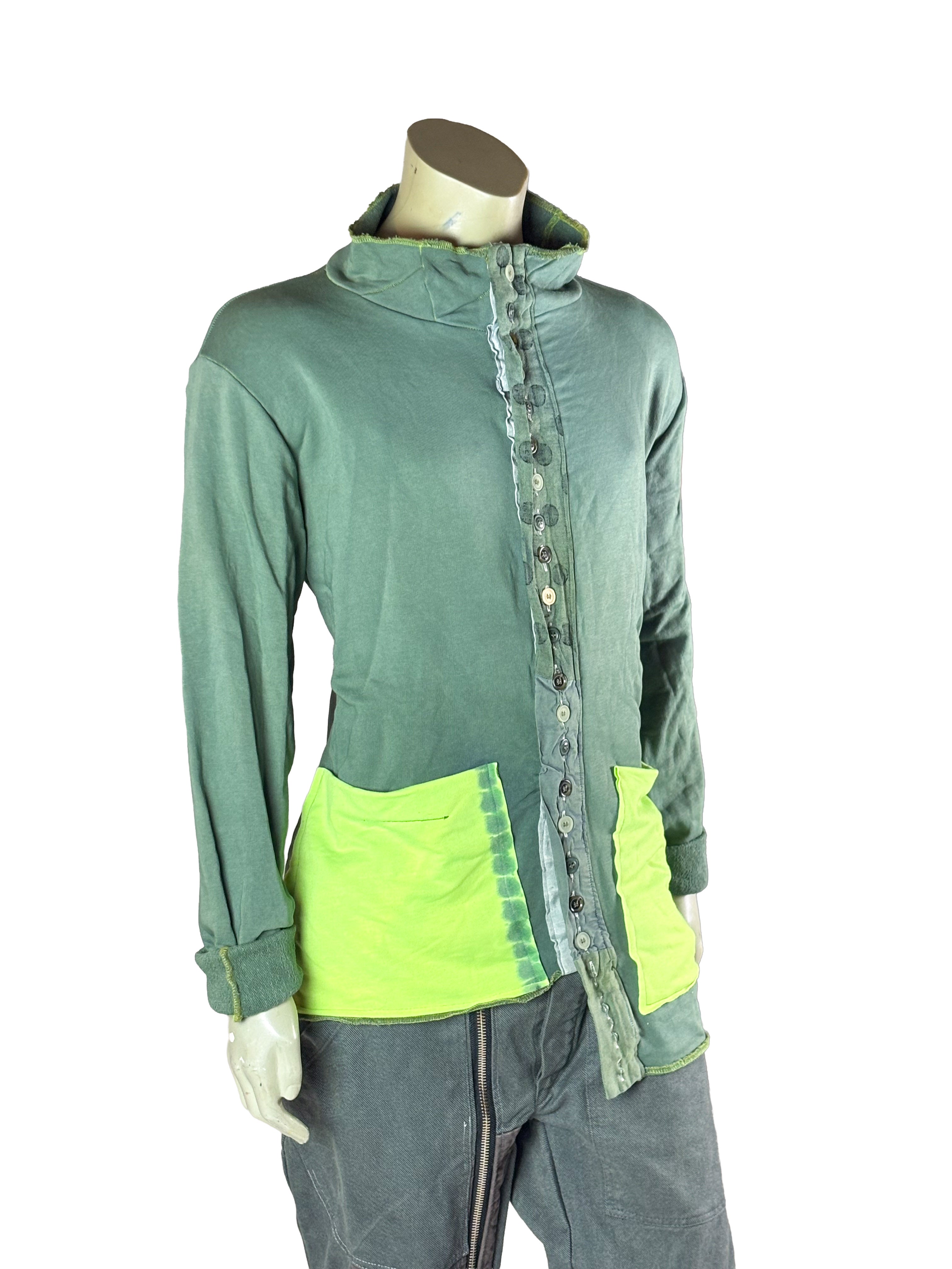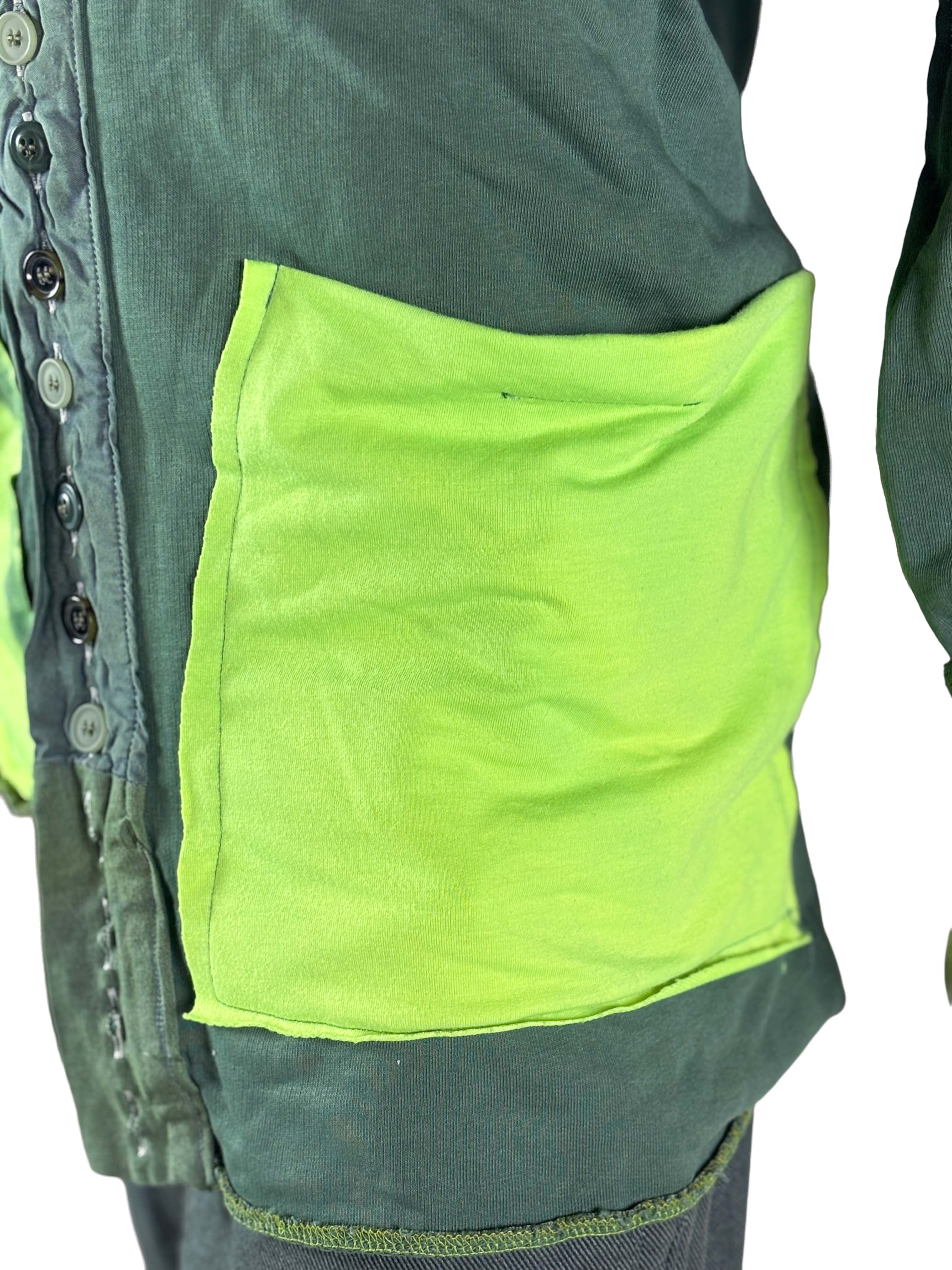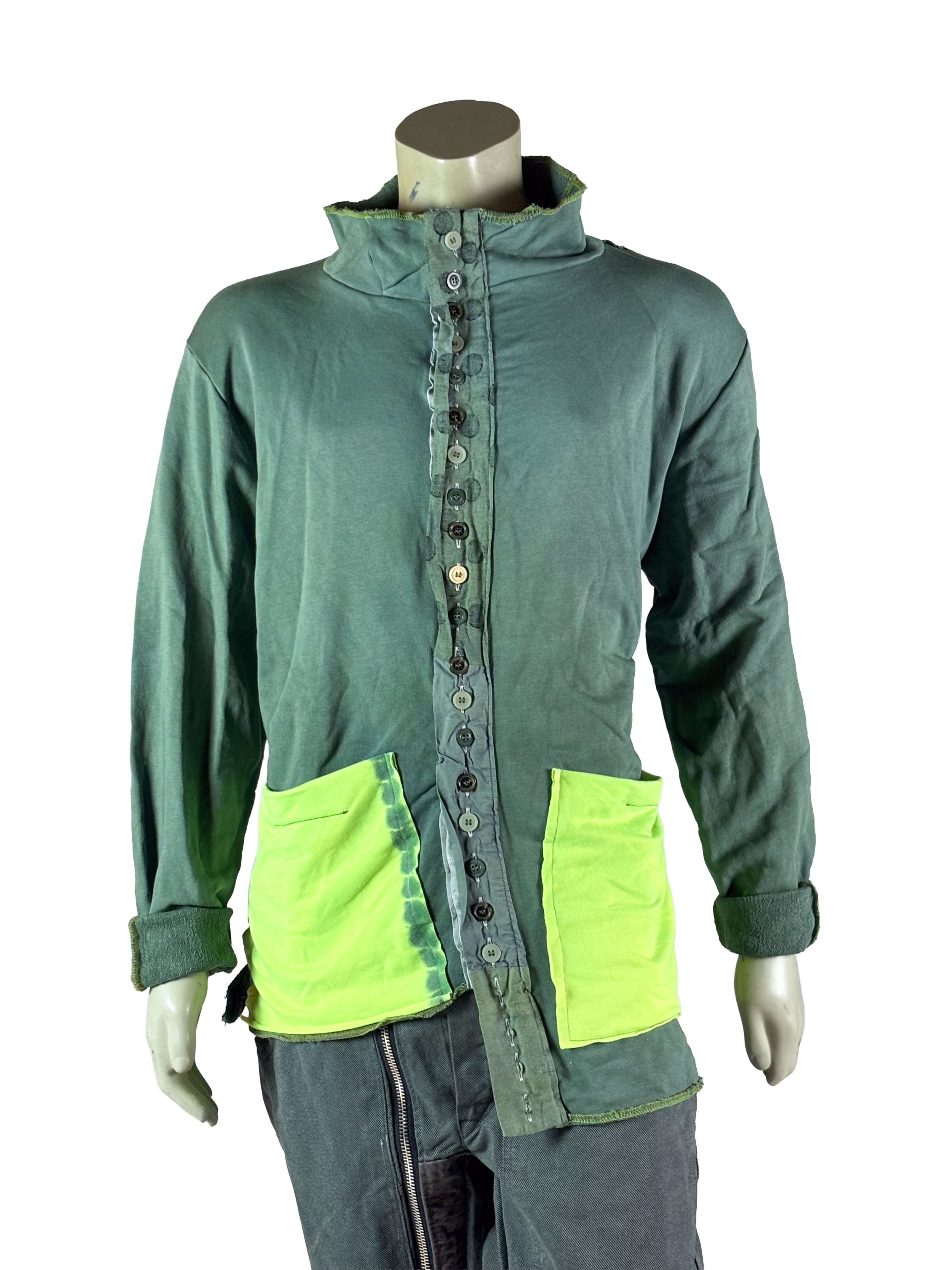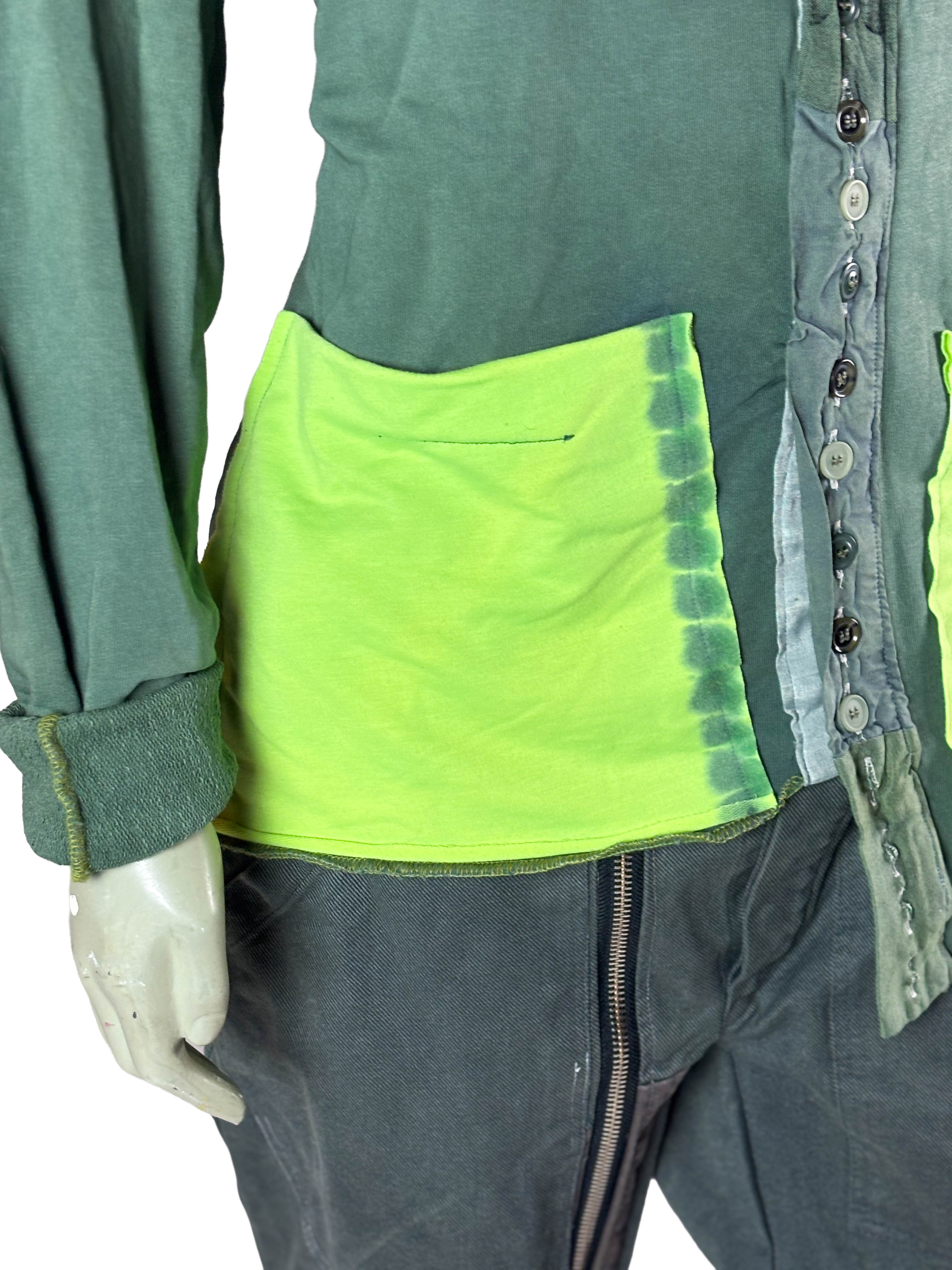 Construct Shirt 5 of 10 presents a green base complemented by yellow-green utility pockets. The color contrast adds functional character while maintaining the structured and artistic identity of the series.