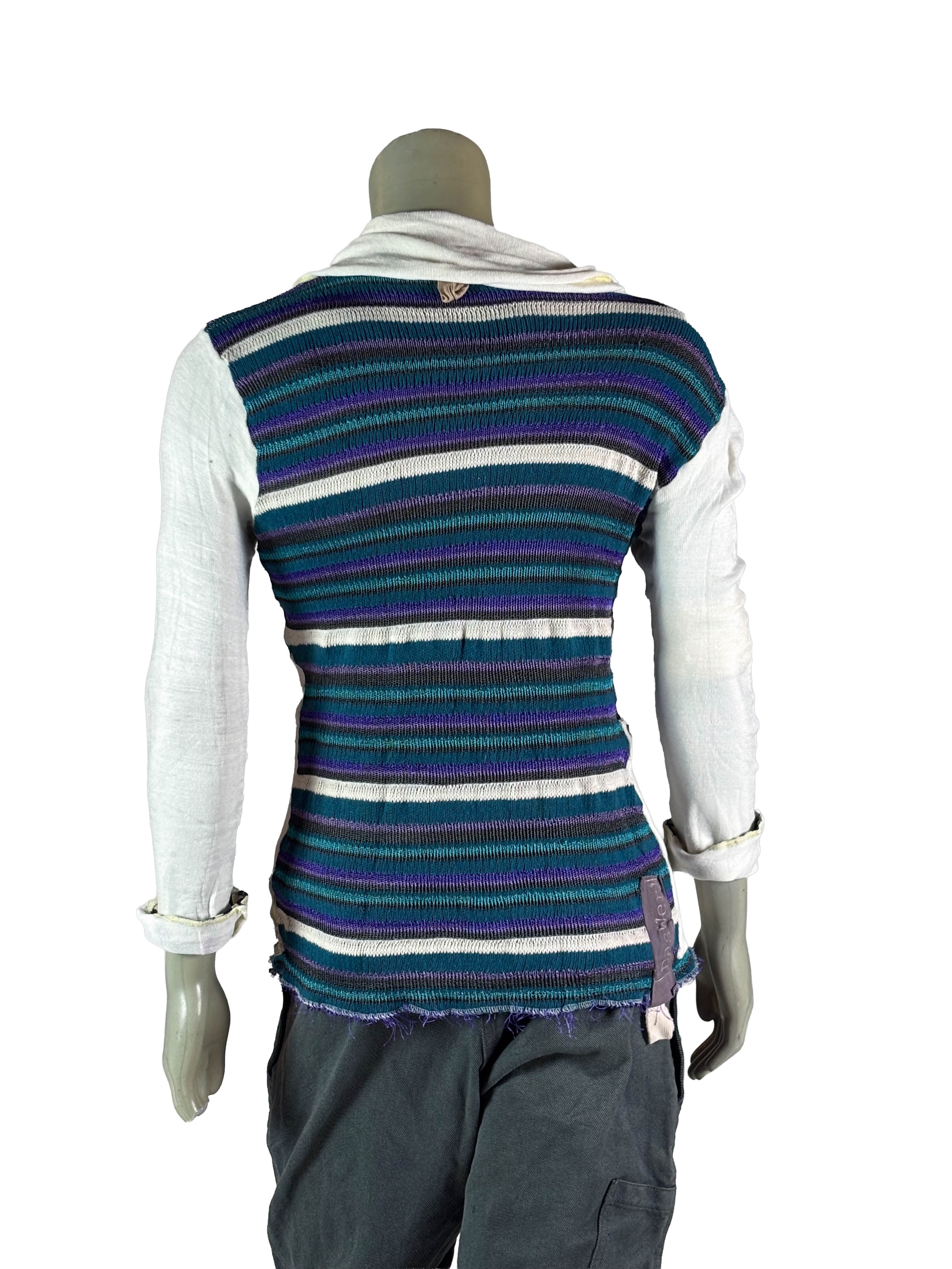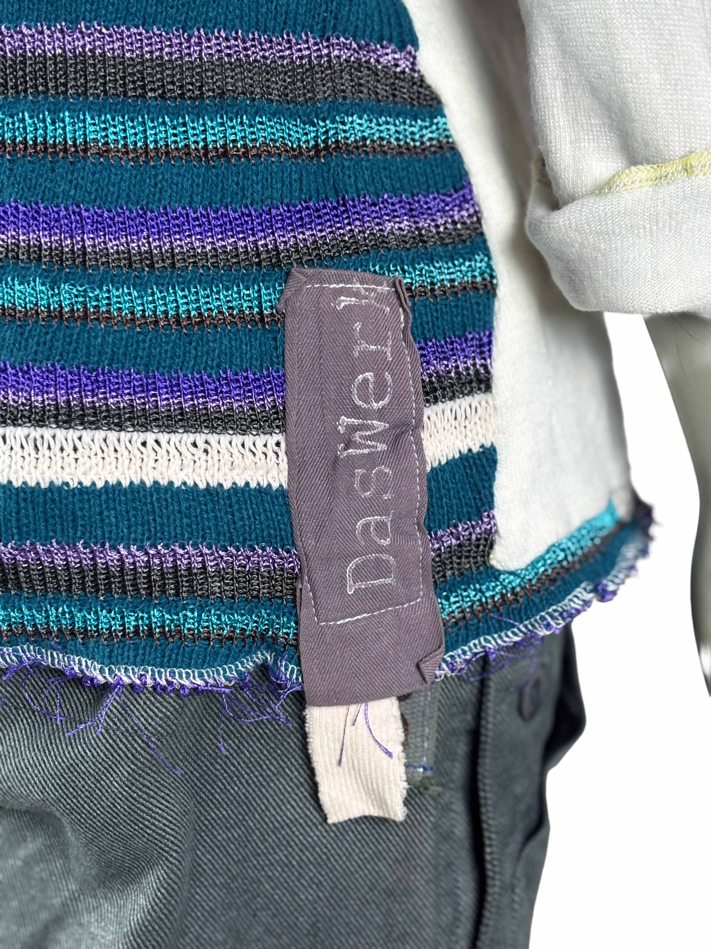 Construct Shirt 6 of 10 features a white foundation combined with horizontally striped lilac-blue elements. The linear rhythm enhances the silhouette and reinforces the architectural aesthetic of this unisex designer piece.