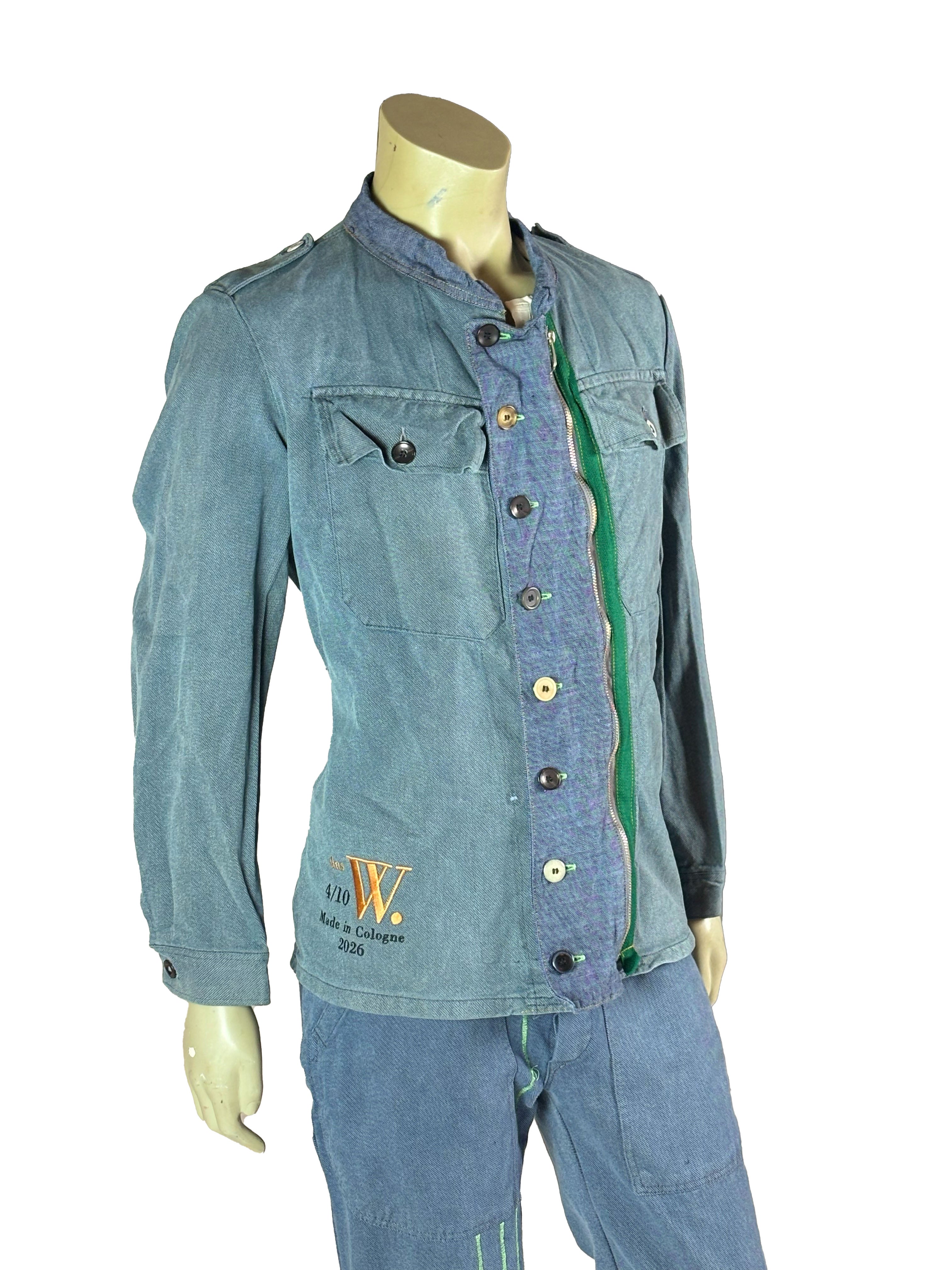 Natural variations in tone, texture and surface are intentionally preserved. Fading, wear marks and subtle irregularities remain visible and form the visual identity of each piece. While all jackets share the same construction principle, no two are exactly alike — each carries its own material history.
