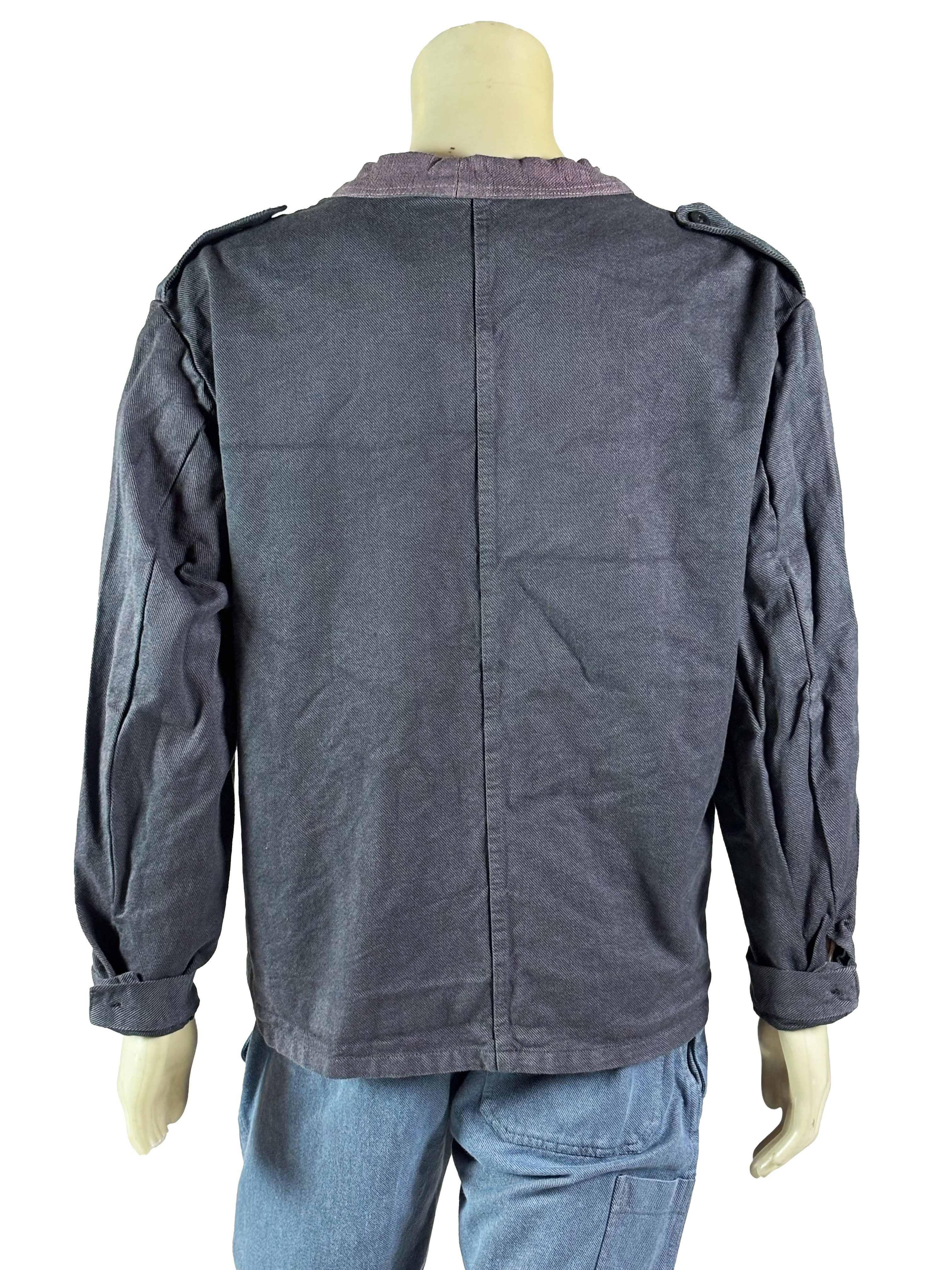 Natural variations in tone, texture and surface are intentionally preserved. Fading, wear marks and subtle irregularities remain visible and form the visual identity of each piece. While all jackets share the same construction principle, no two are exactly alike — each carries its own material history.