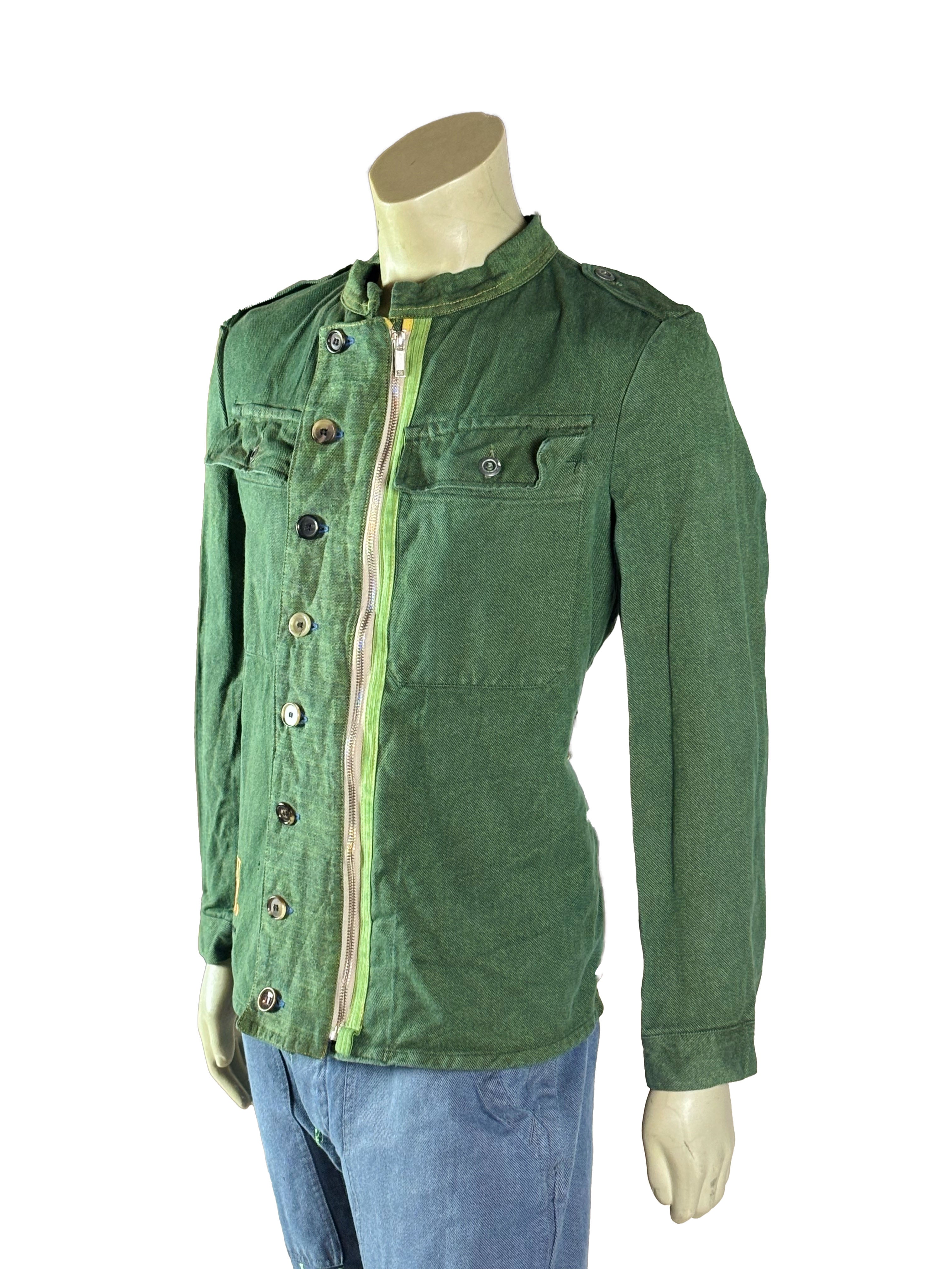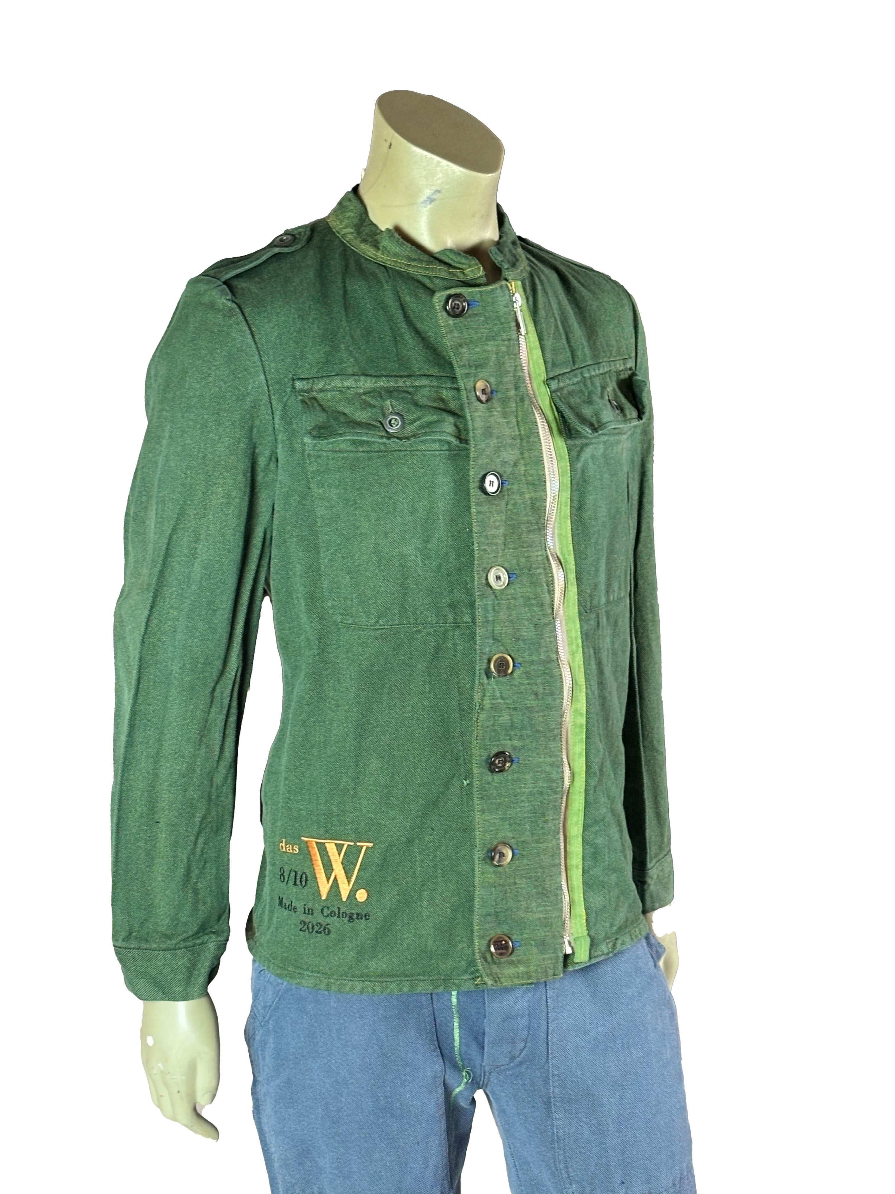 Natural variations in tone, texture and surface are intentionally preserved. Fading, wear marks and subtle irregularities remain visible and form the visual identity of each piece. While all jackets share the same construction principle, no two are exactly alike — each carries its own material history.