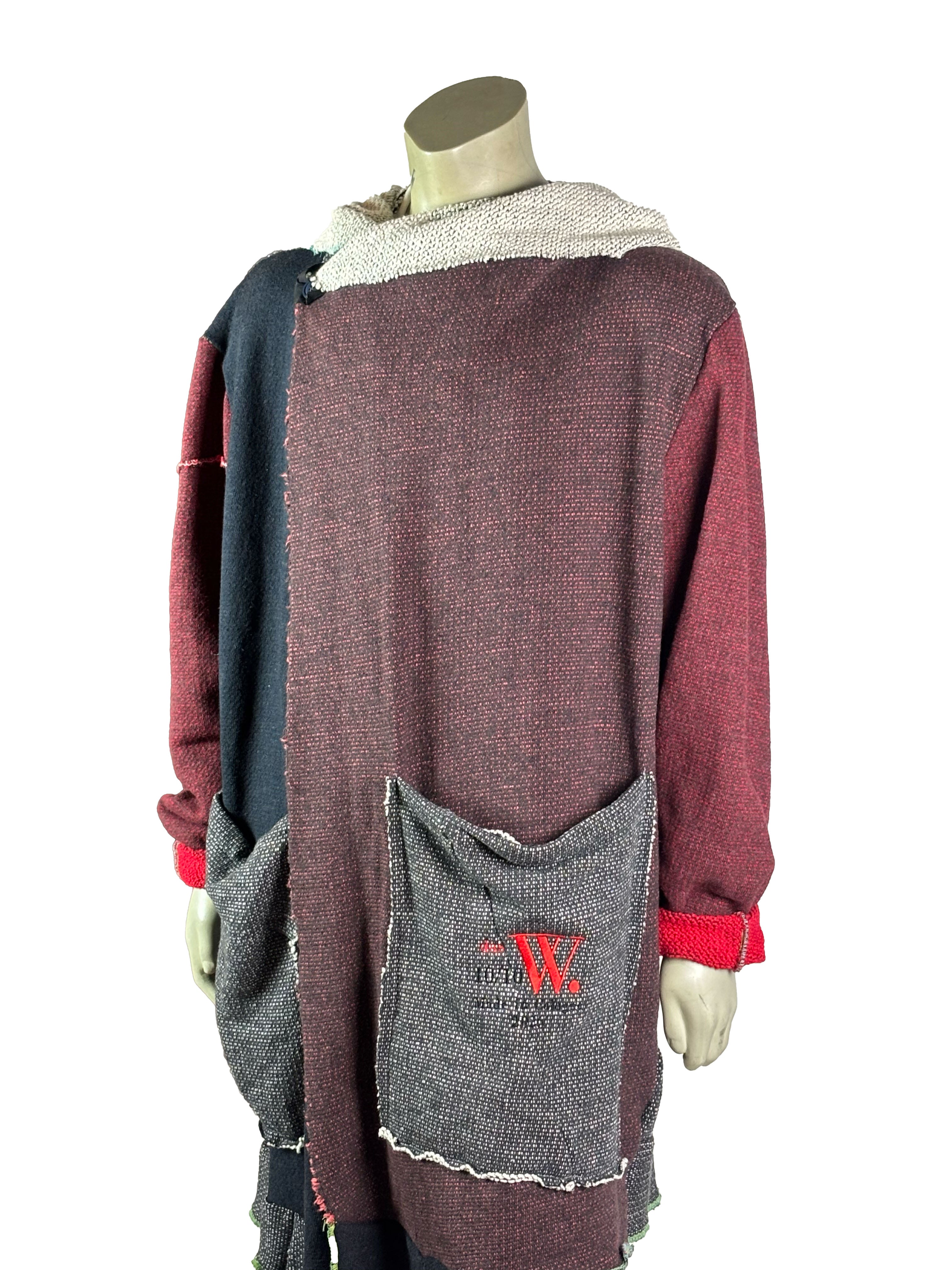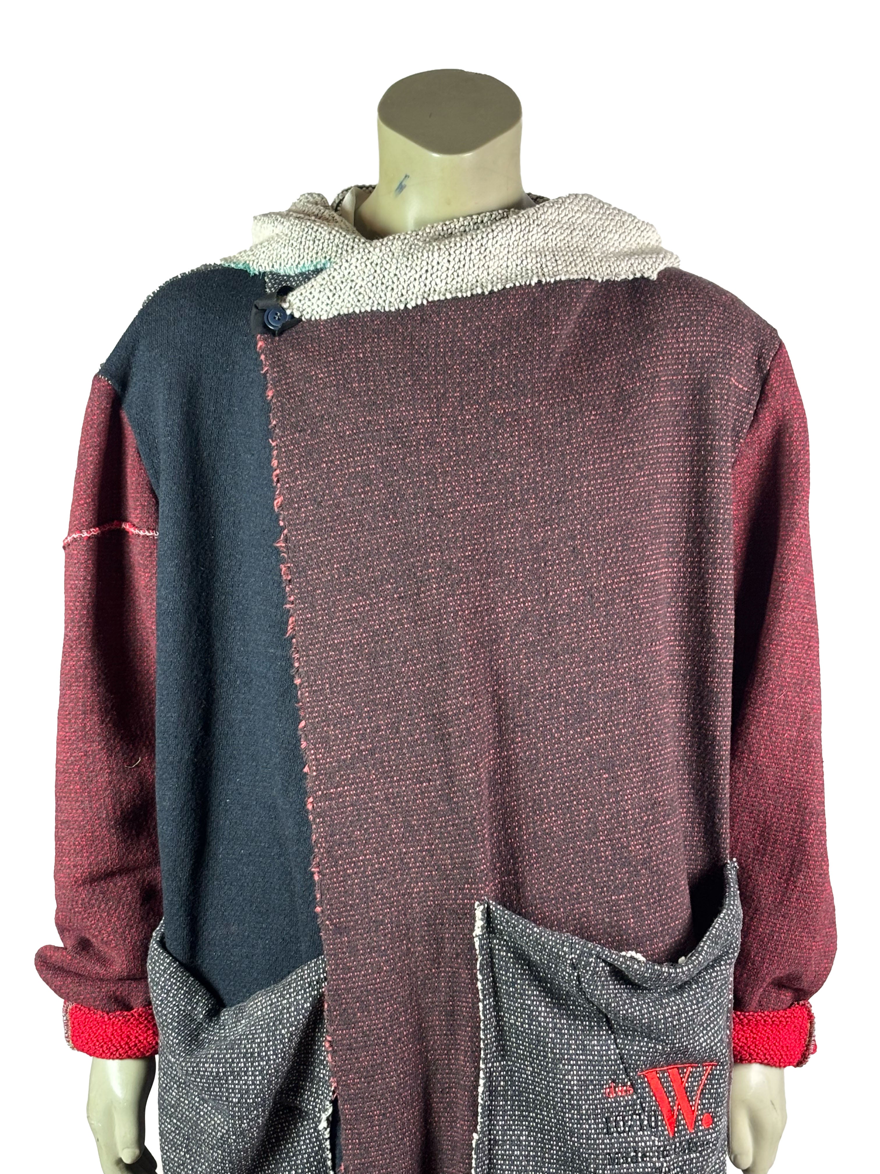 Each cape in this limited series is composed of a carefully assembled mix of different fabrics, brought together through a handcrafted process that emphasizes material contrast and construction. Variations in texture, weight and surface are intentionally preserved, giving every piece its own presence while maintaining a cohesive visual language across the collection.