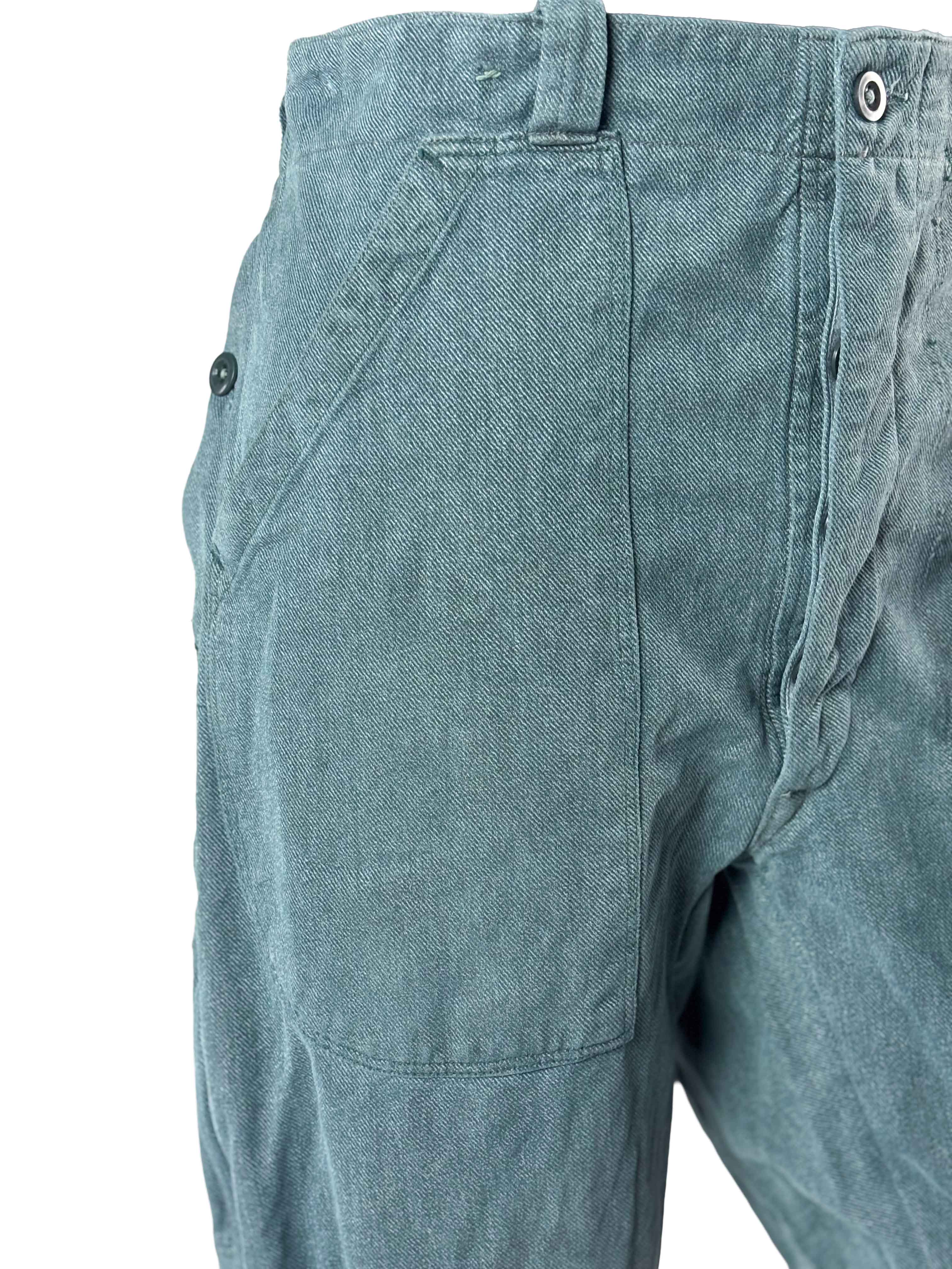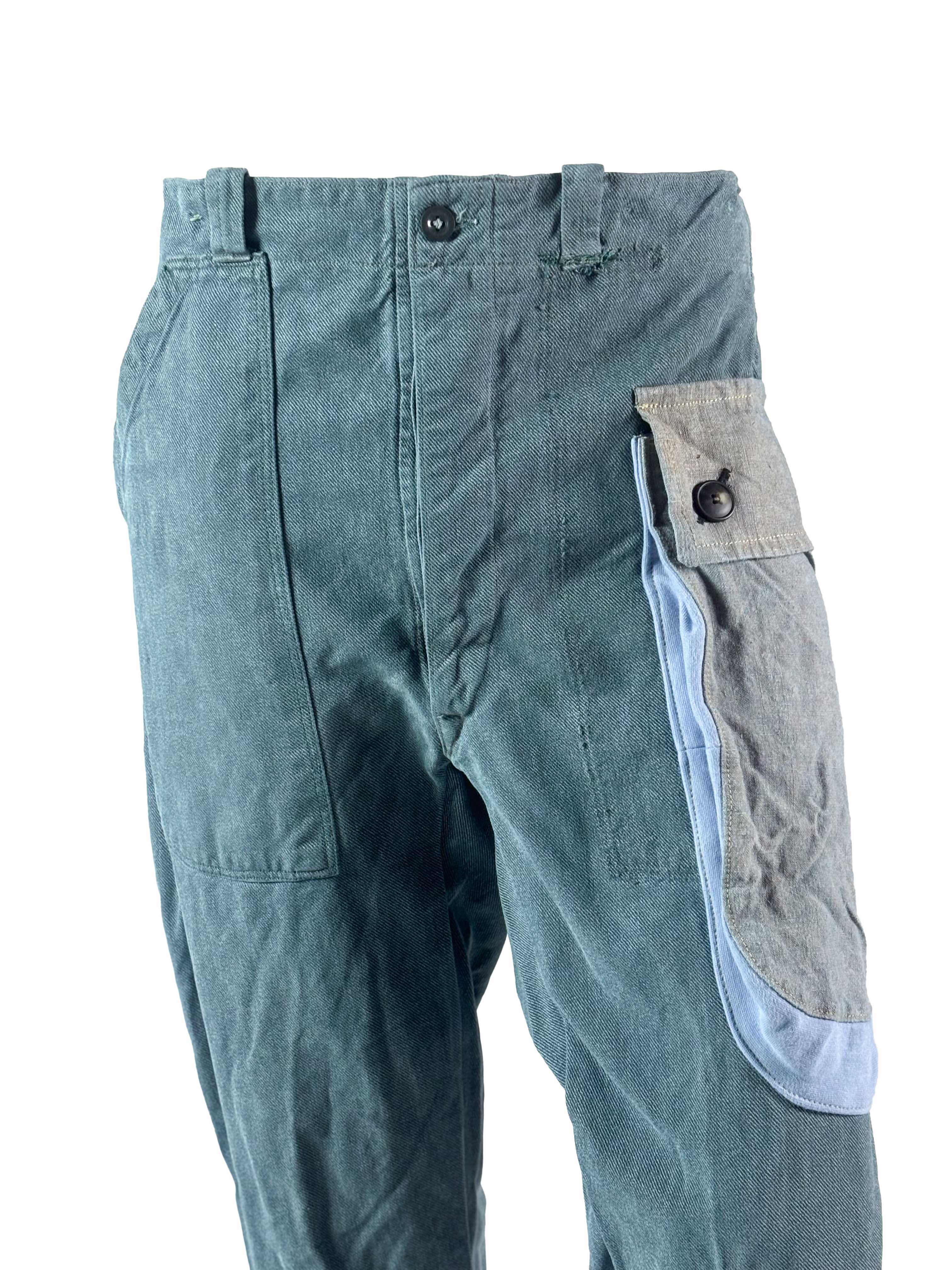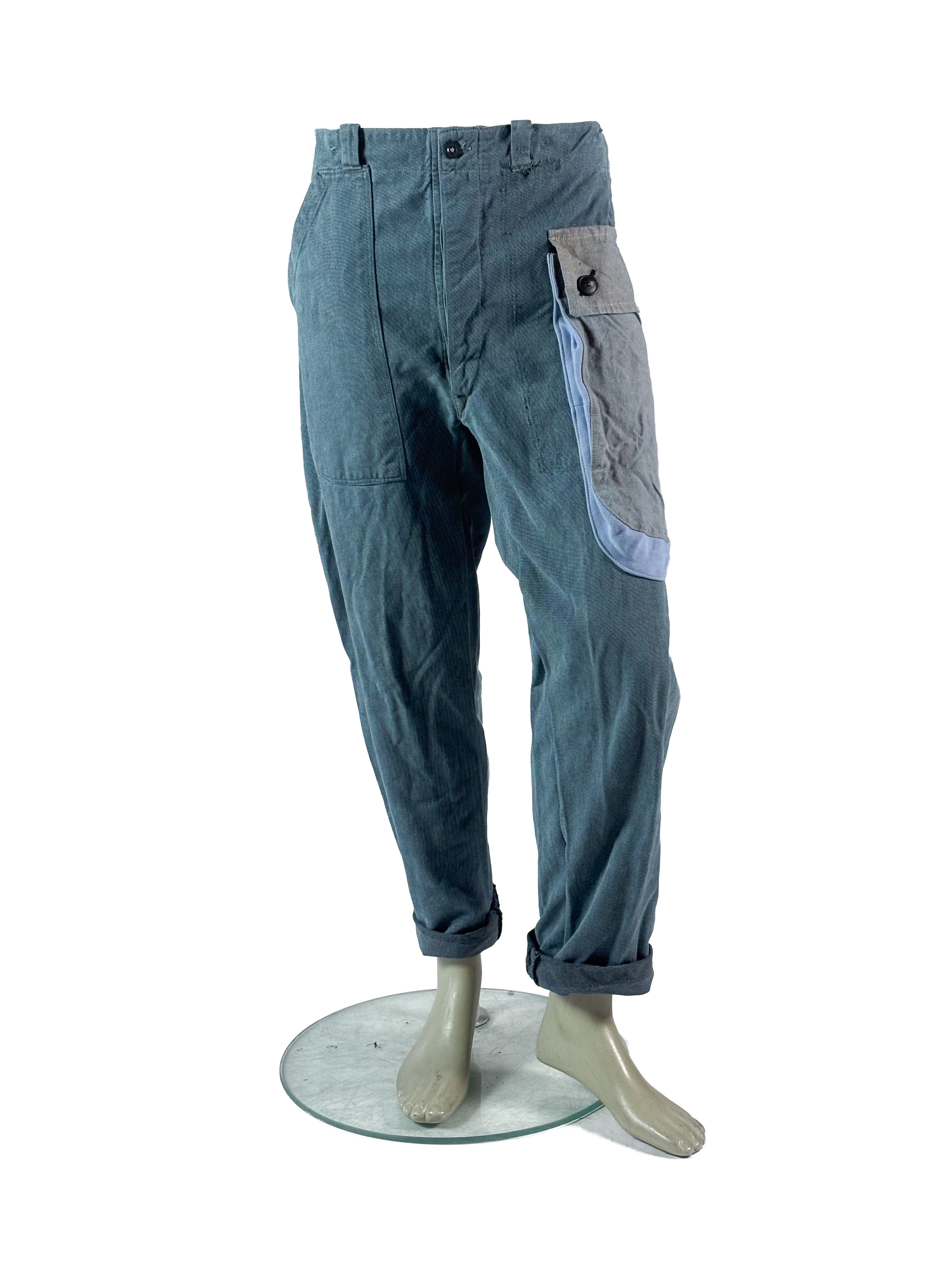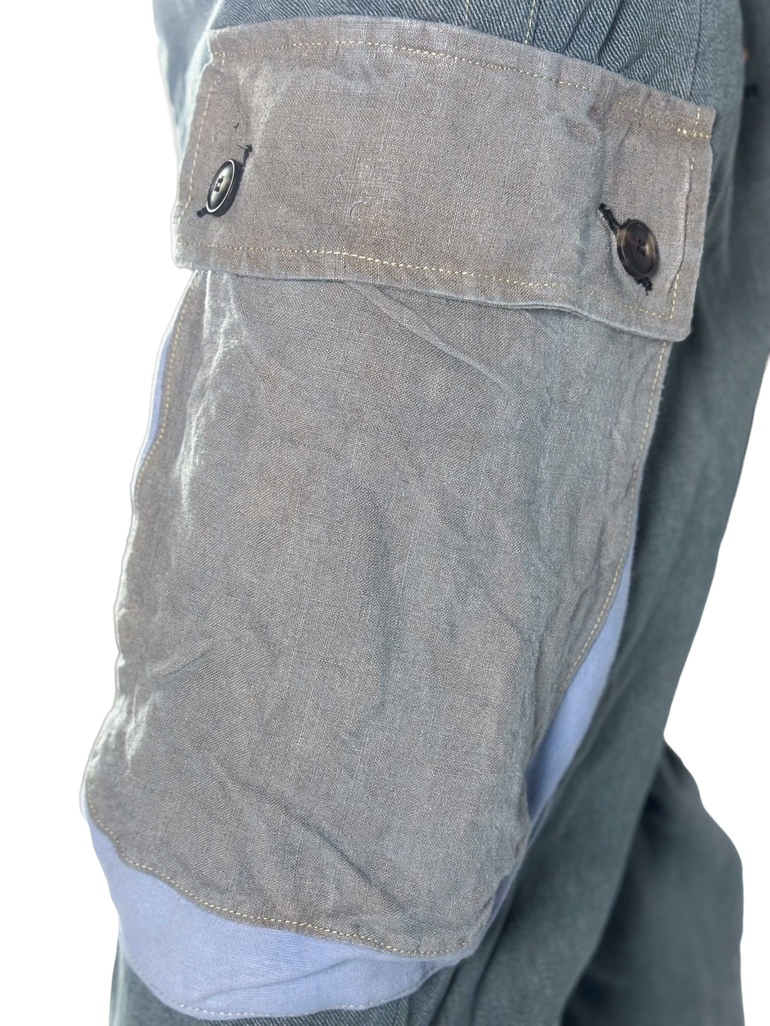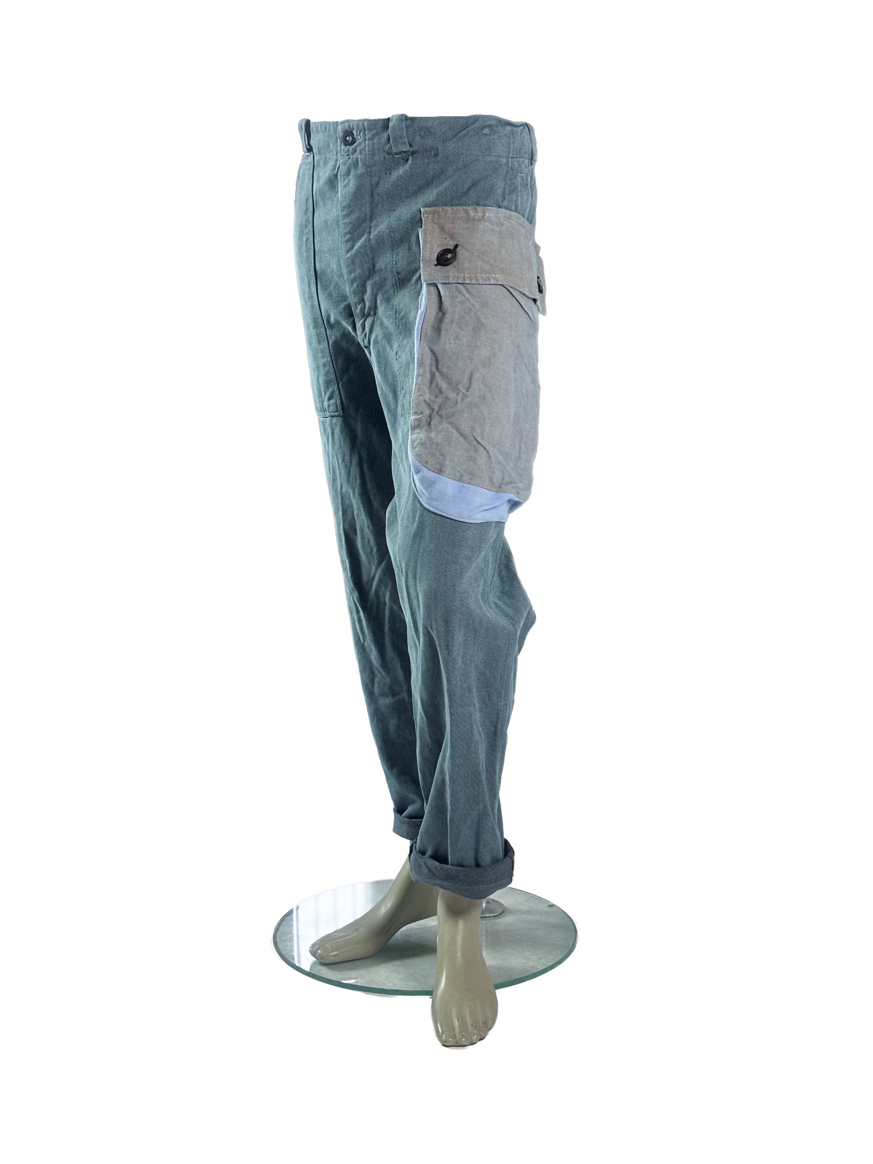 • Cargo pockets made from pre–Berlin Wall post sack fabrics or linen