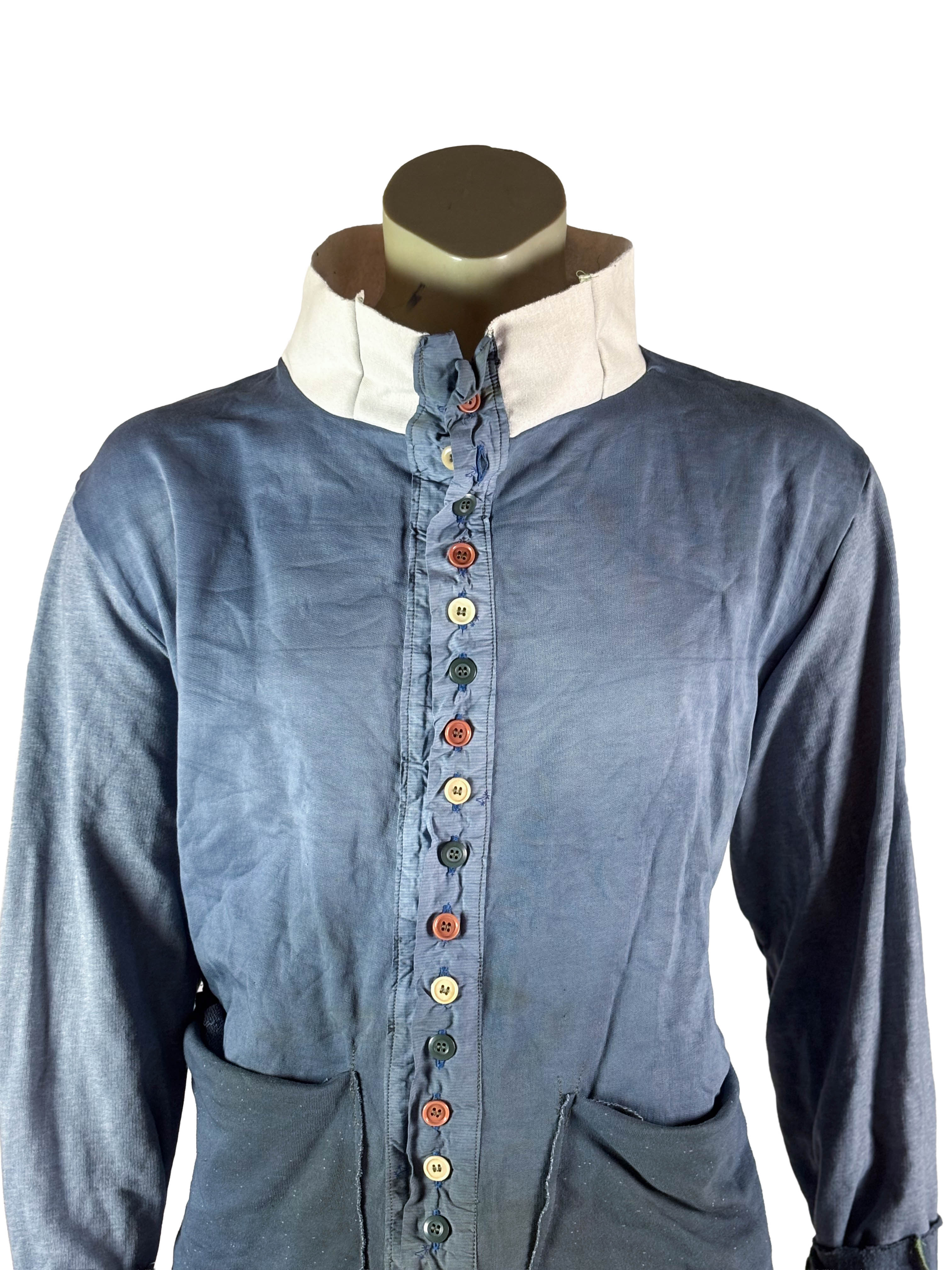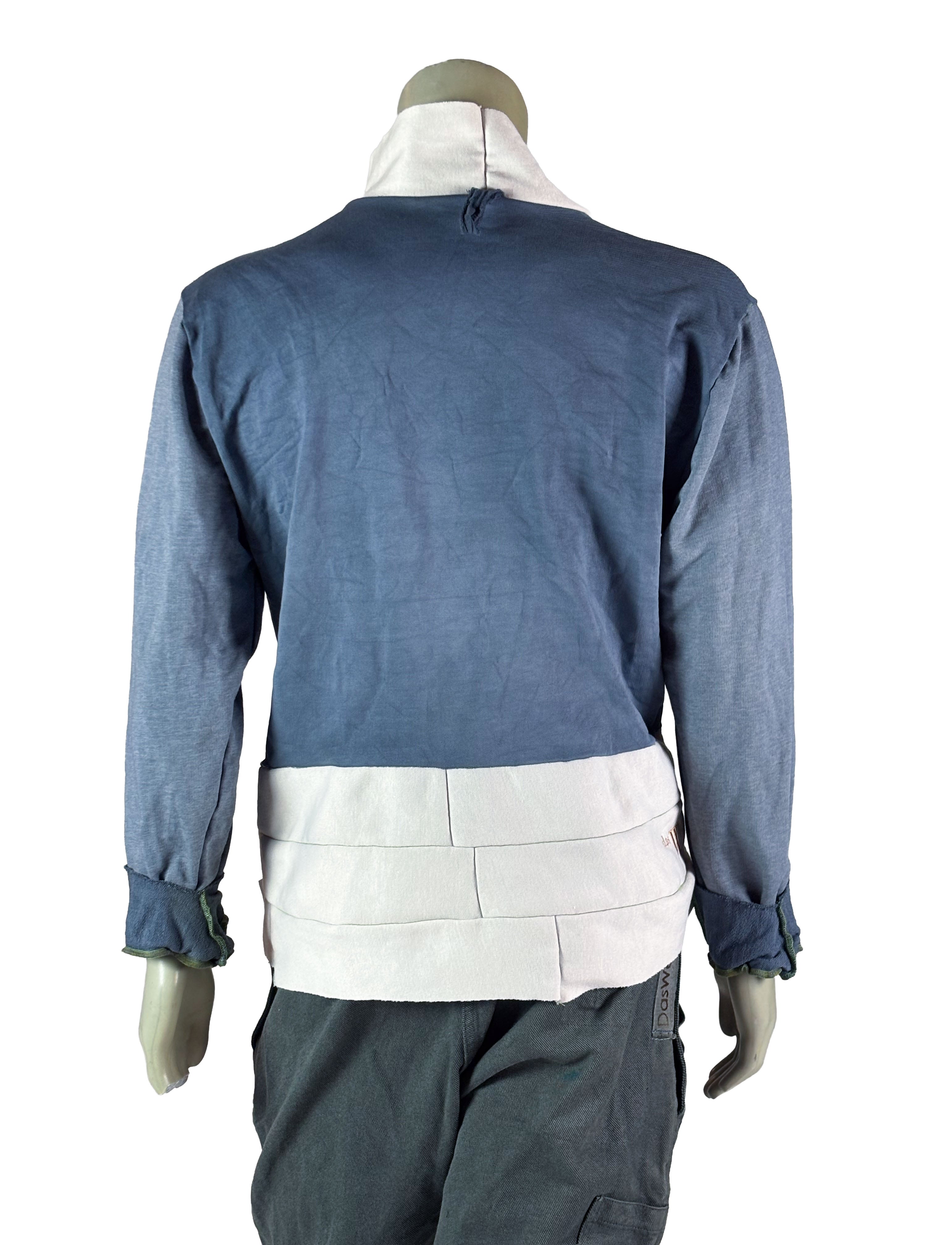 Construct Shirt 4 of 10 revisits a blue base enriched with white structural elements. The clean contrasts emphasize the architectural cut and underline the handcrafted precision behind this limited edition piece.