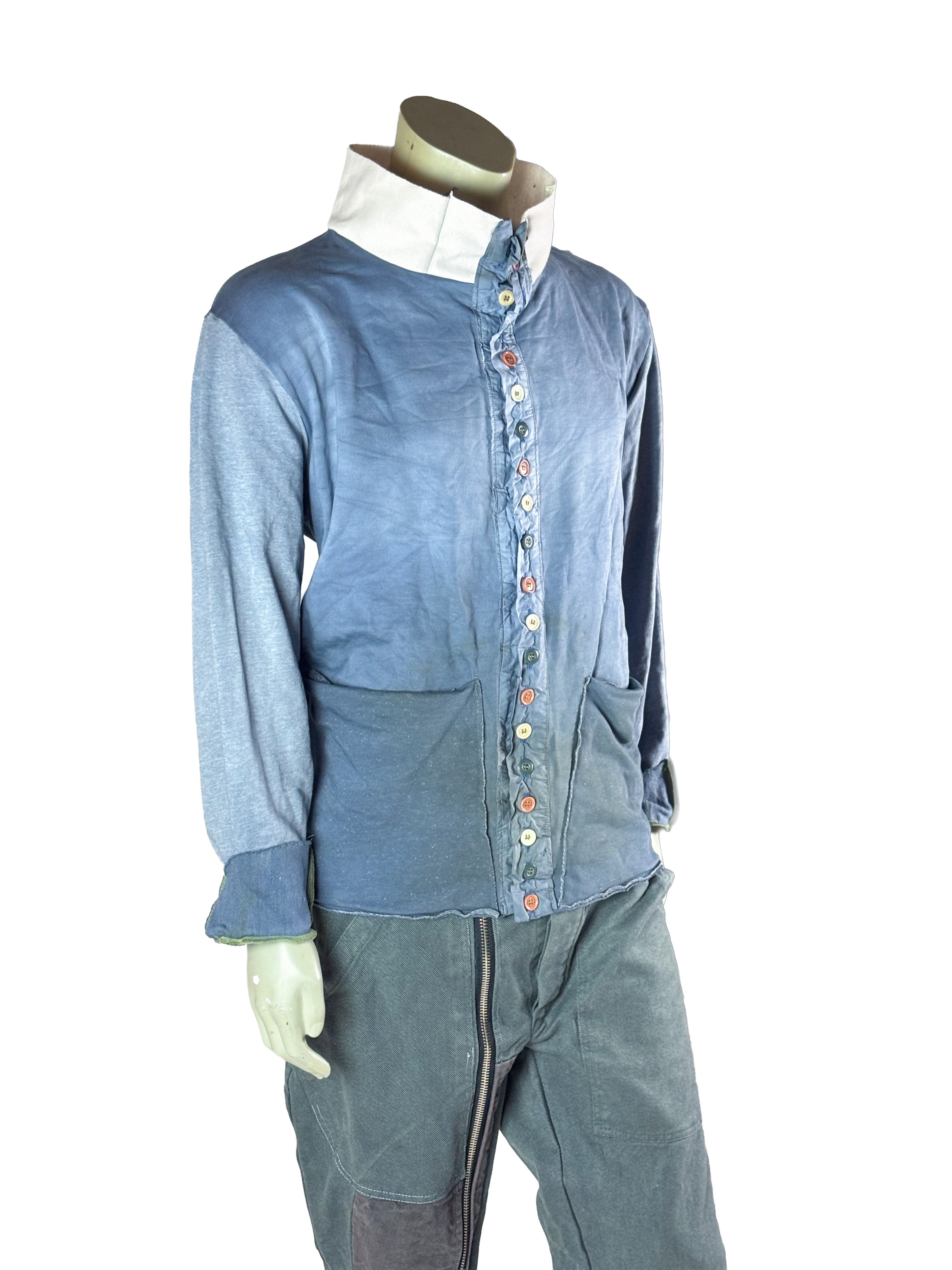 Color gradients, stitched button plackets and mixed textures give every piece its own personality while maintaining a consistent design language throughout the collection. No shirt is repeated — each one is an individual construction within a limited series of ten.