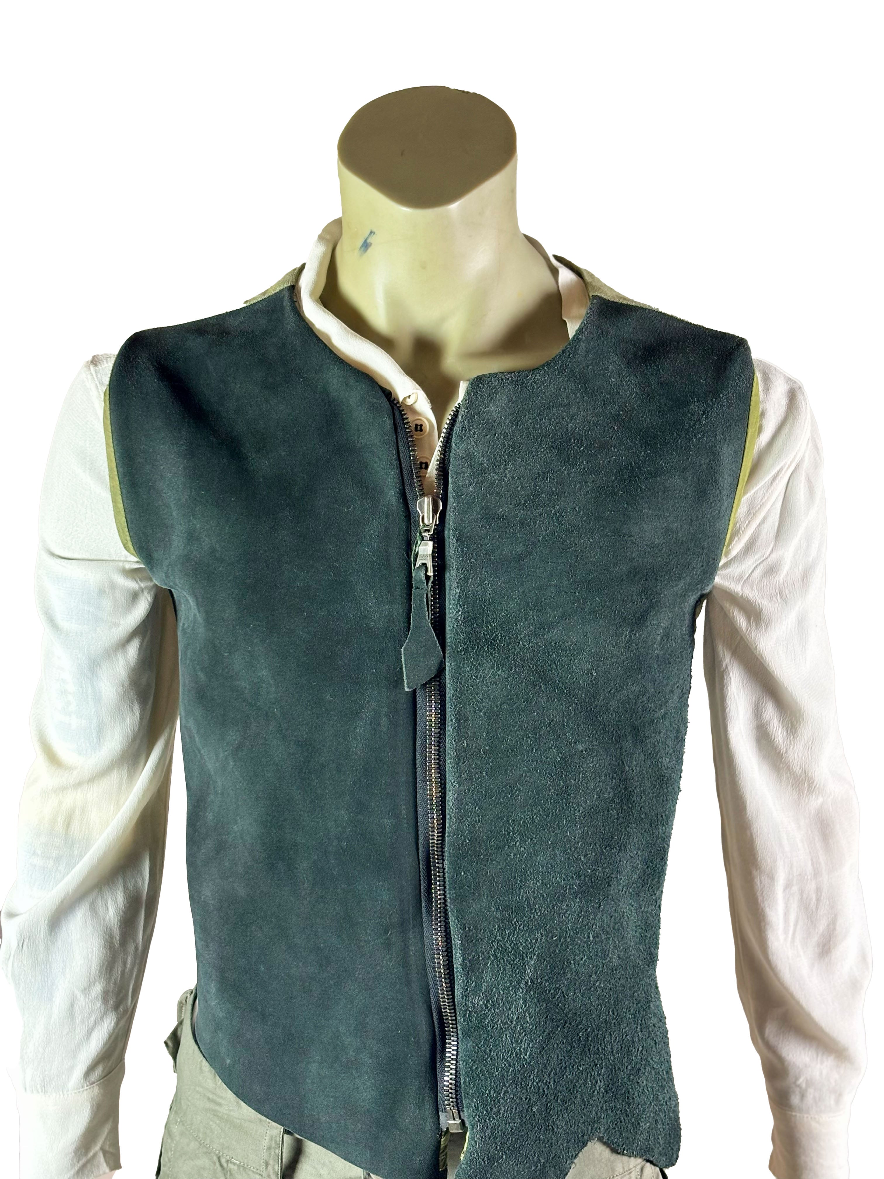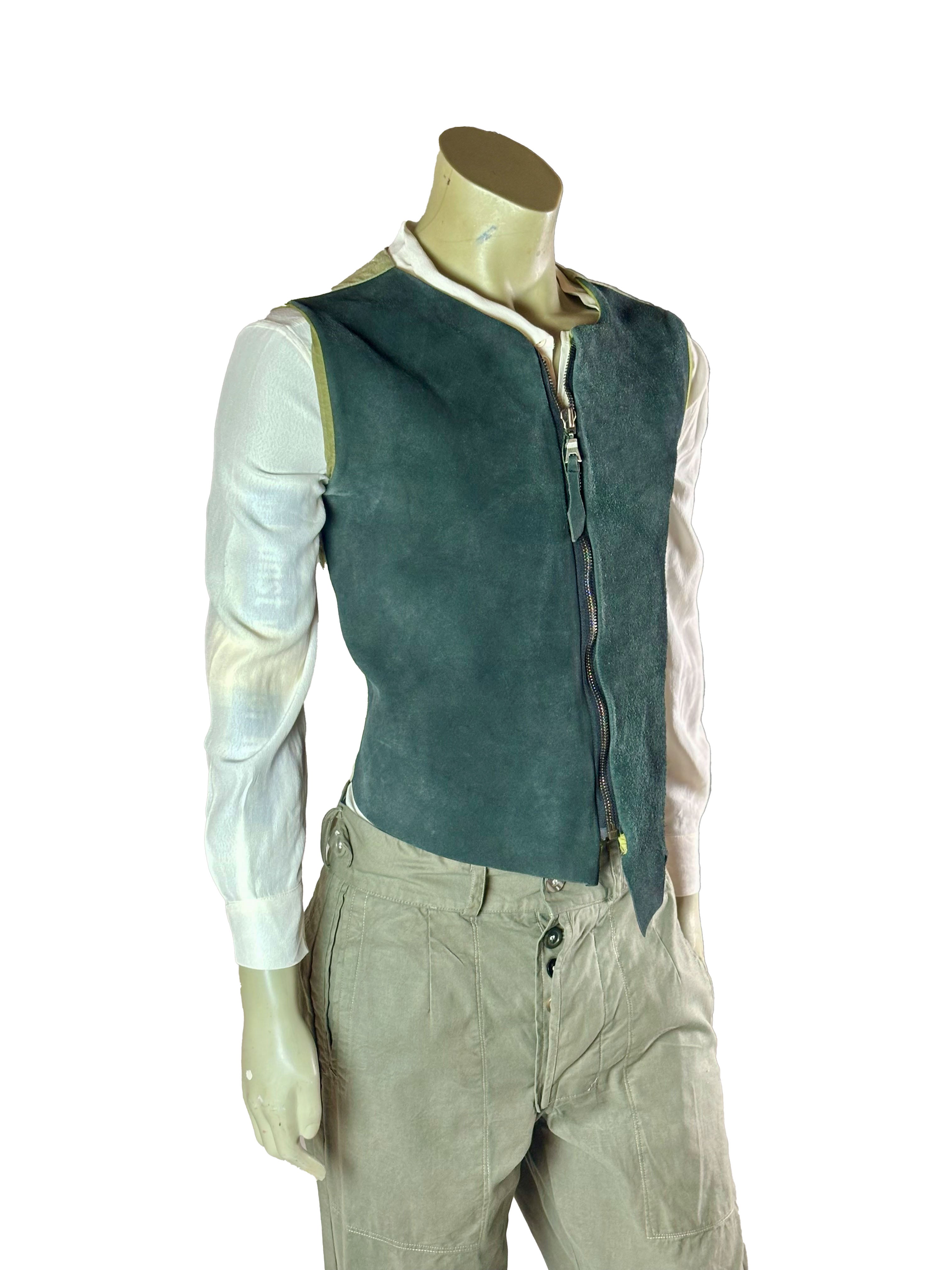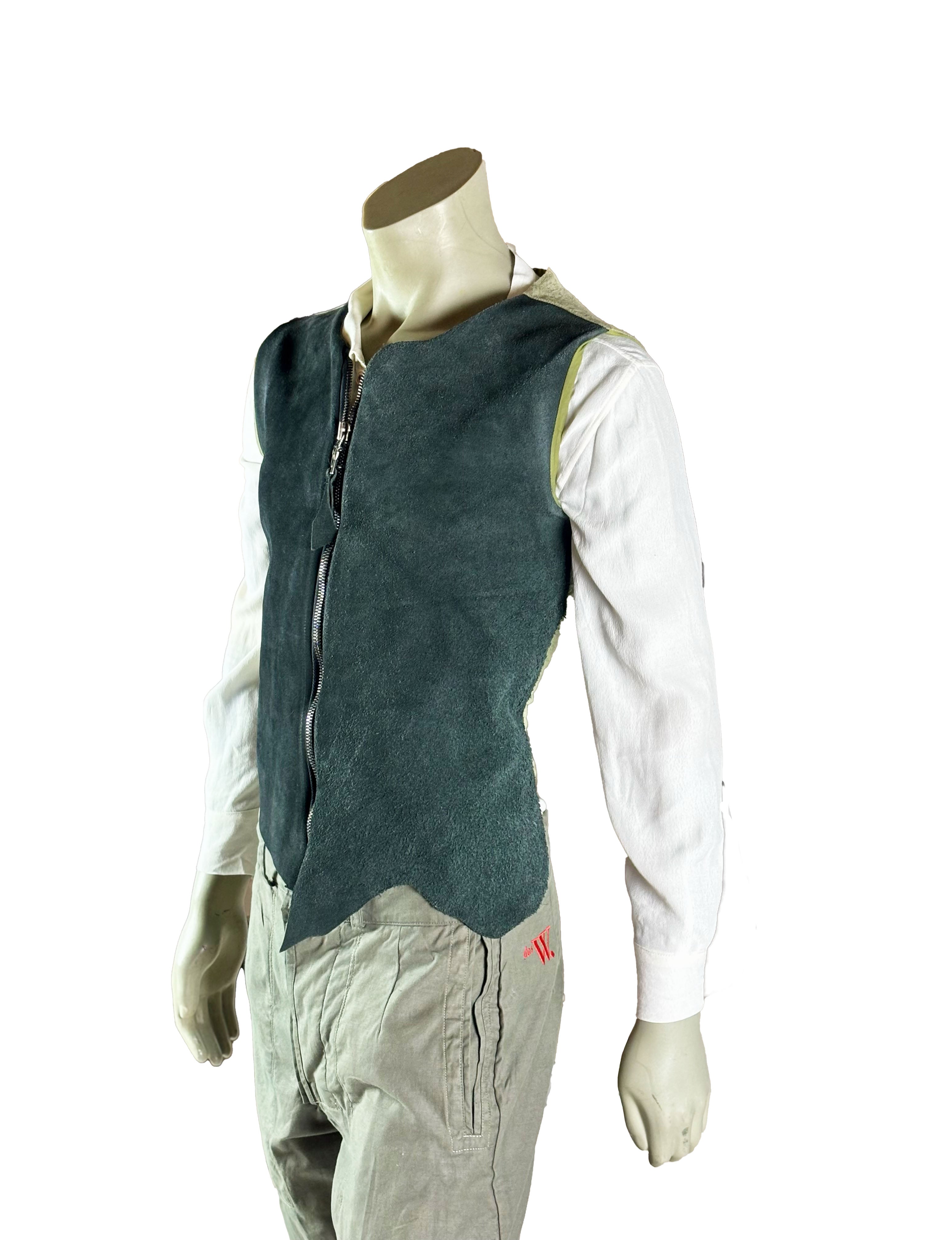 The front is made from leather, giving the vest a tactile, slightly rugged surface with subtle variations in tone and texture. These natural irregularities underline the handcrafted character and make each piece visually unique. The back is kept lighter and more flexible, allowing for comfortable movement and an easy fit.