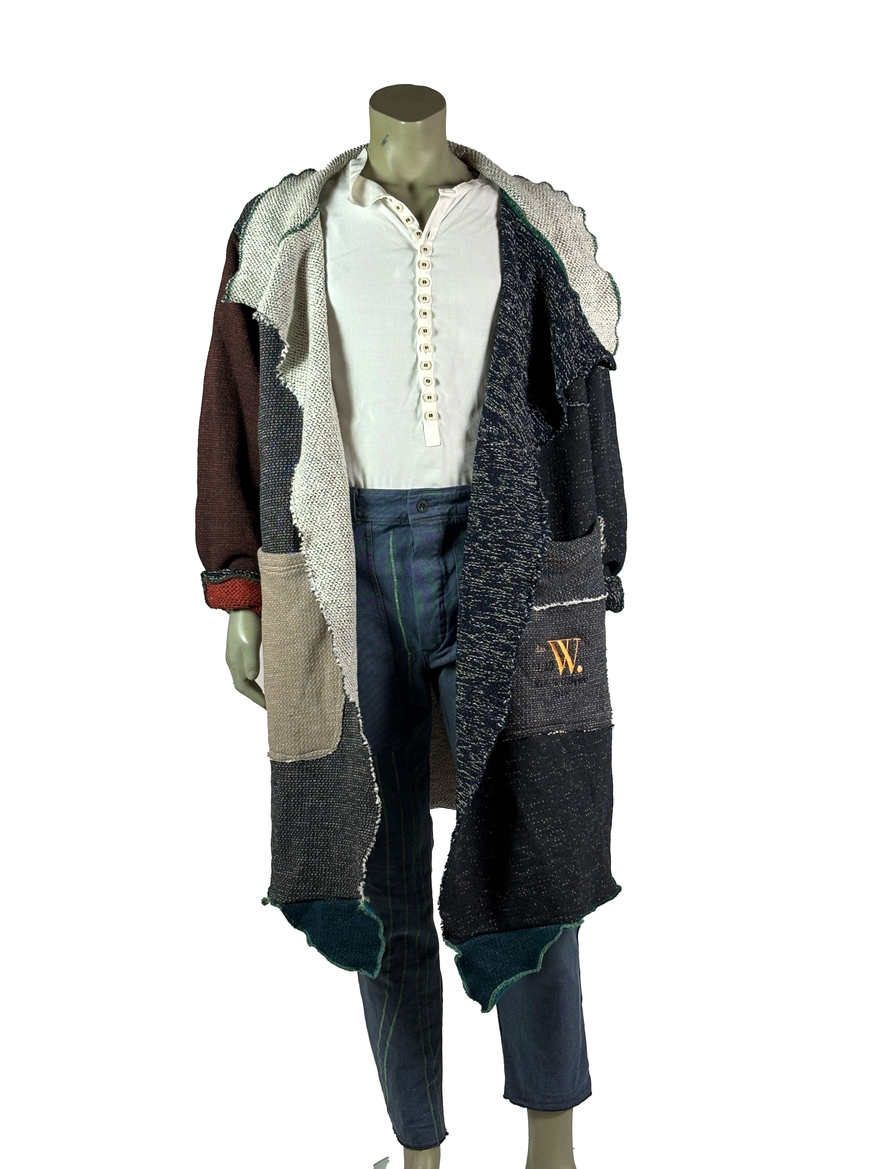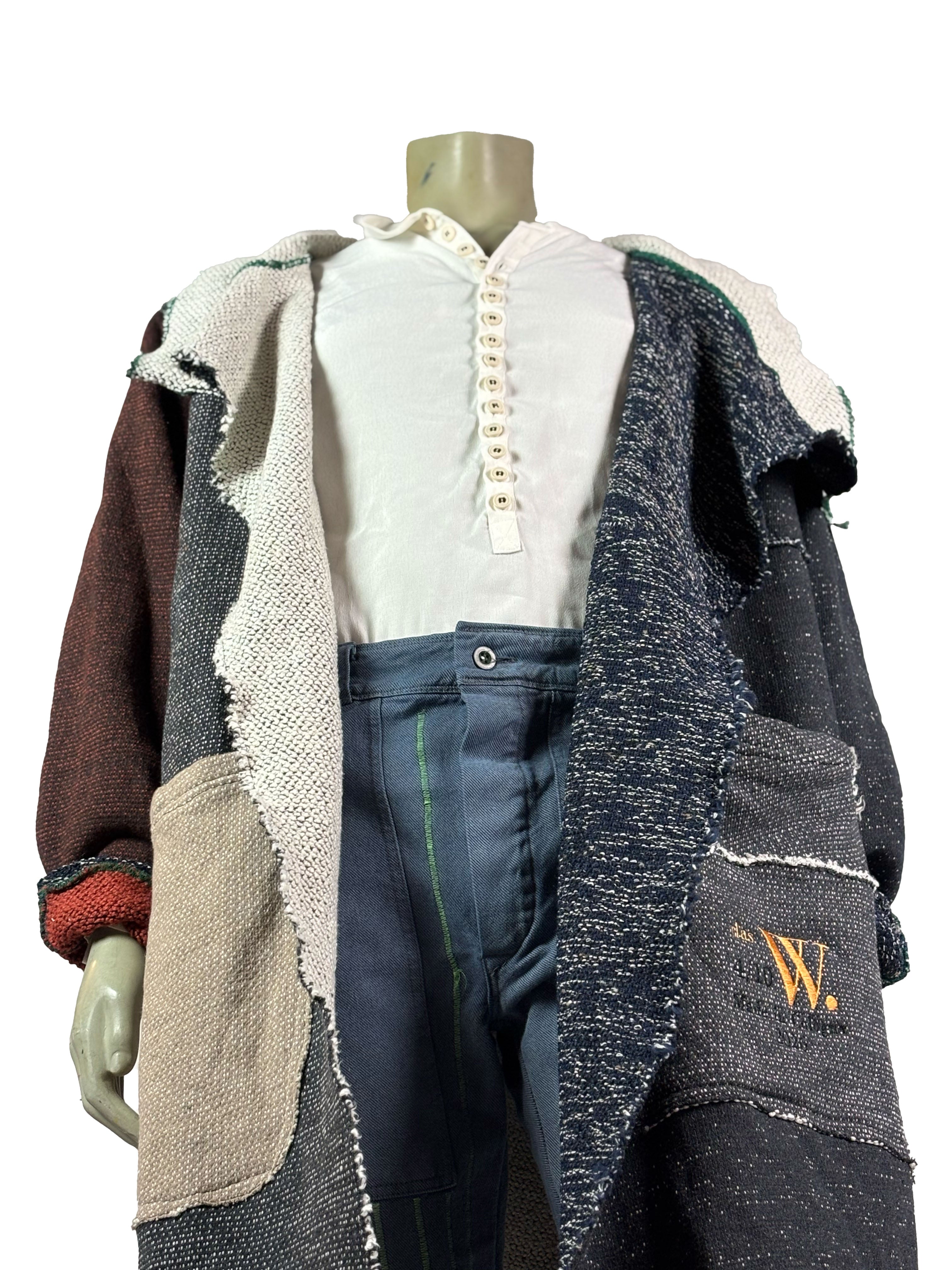 The layered compositions, visible seams and raw edges reflect the making process and highlight the individuality of each cape. Designed to be worn loosely, the silhouettes fall naturally around the body, allowing freedom of movement and an effortless, sculptural drape. Despite their differences, all ten pieces share a common attitude: relaxed, expressive and quietly architectural.