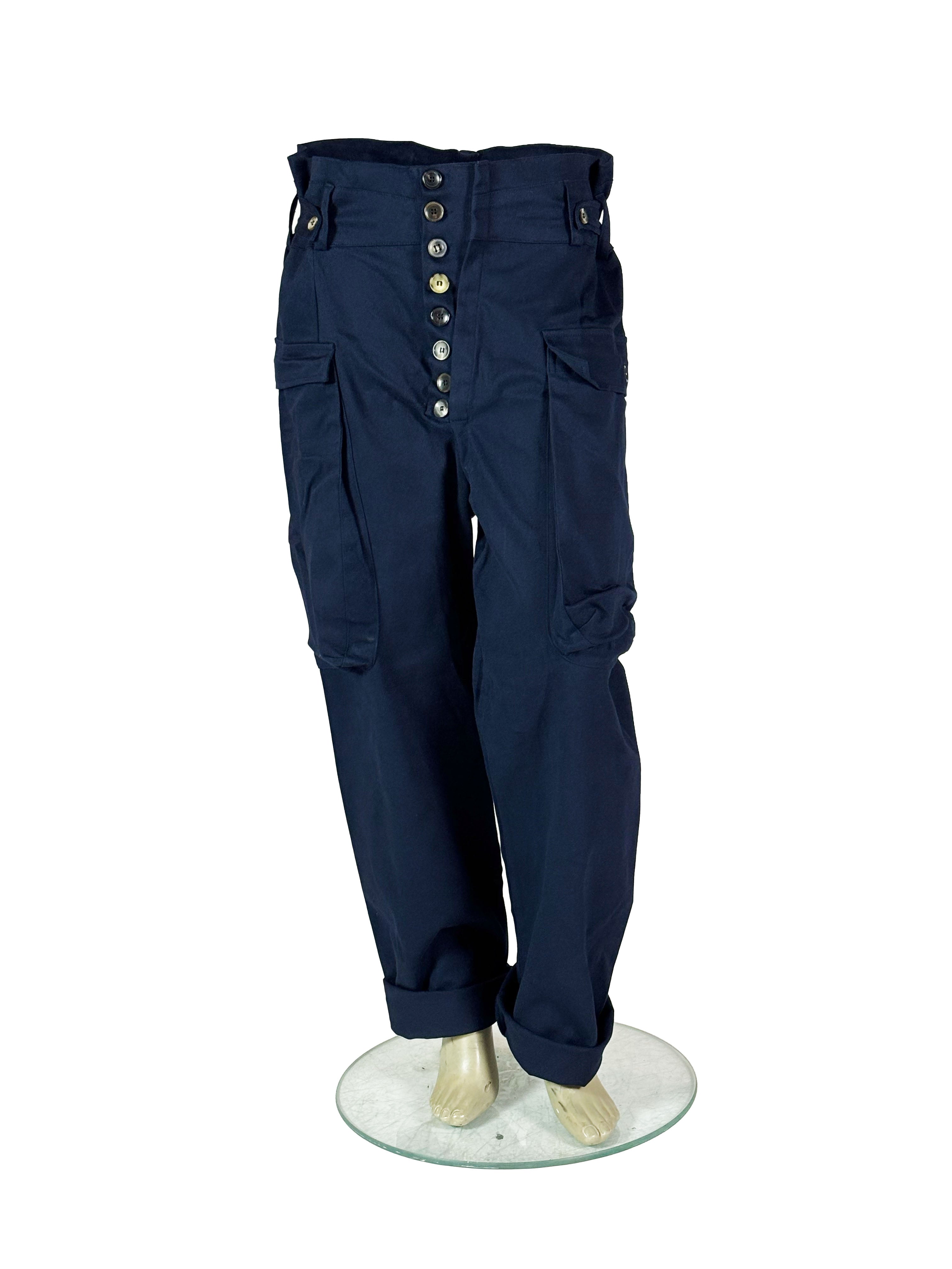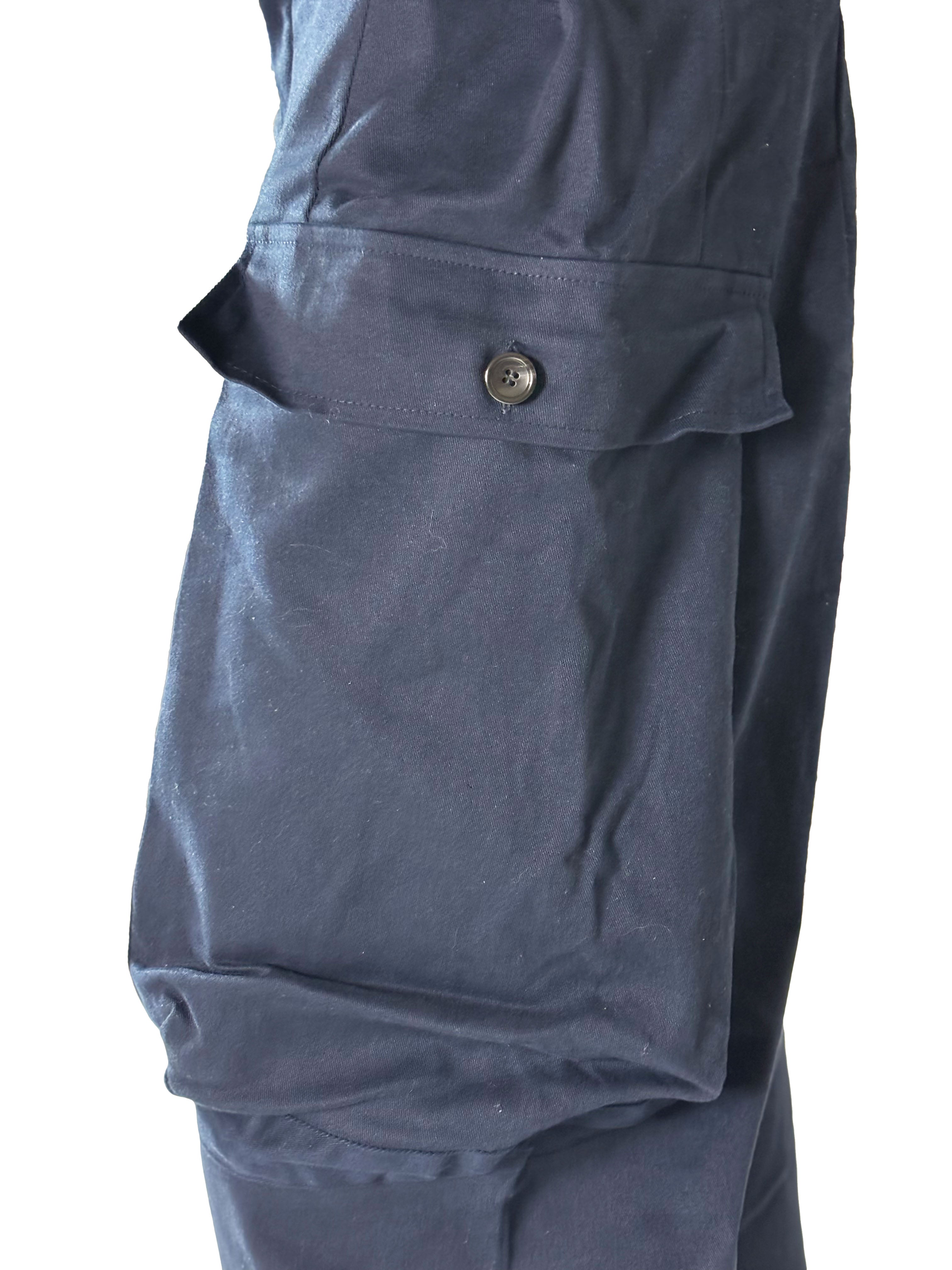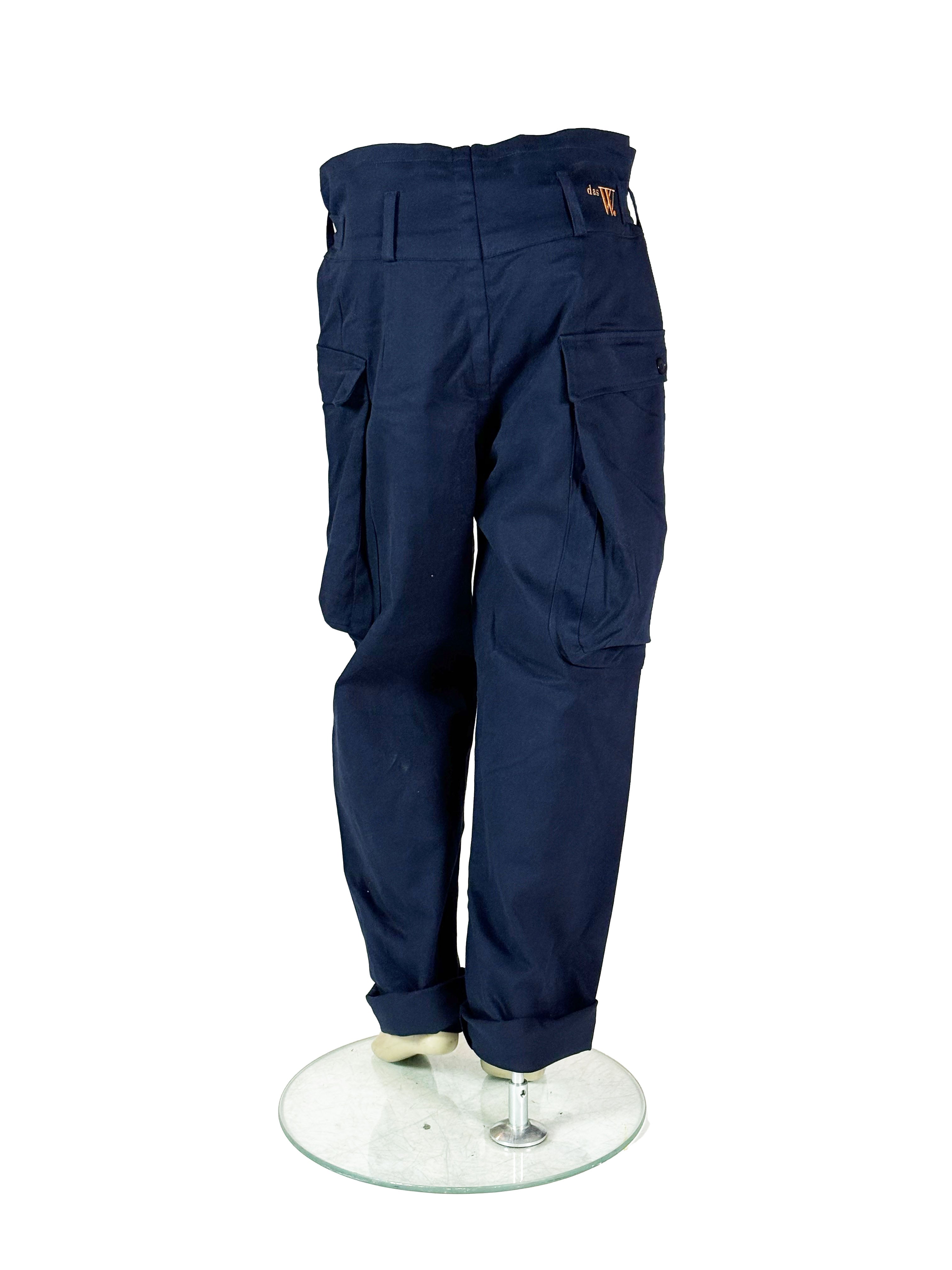 In this dark blue version, the trousers take on a deeper and more grounded workwear character, with a calm and almost uniform-like presence.