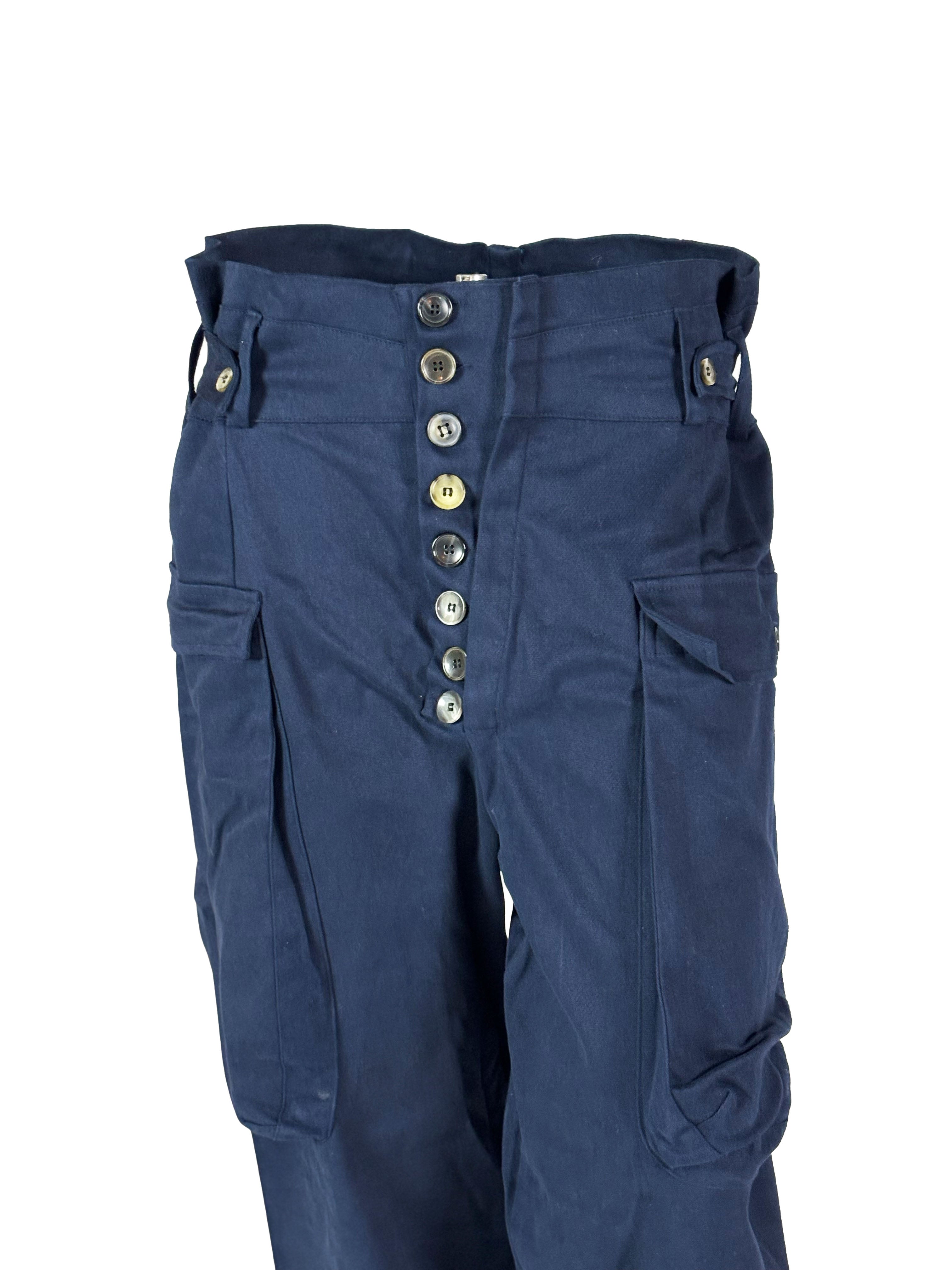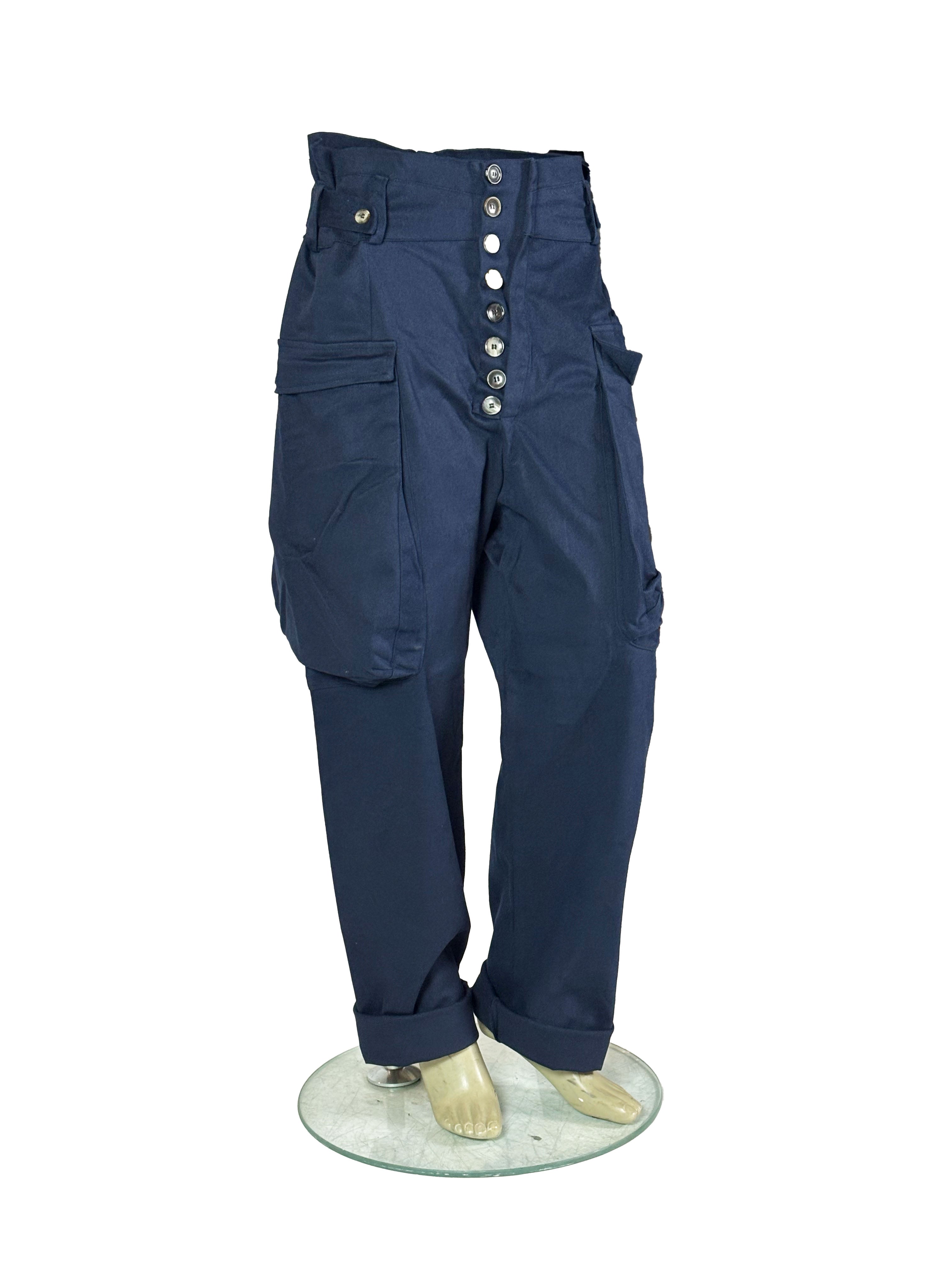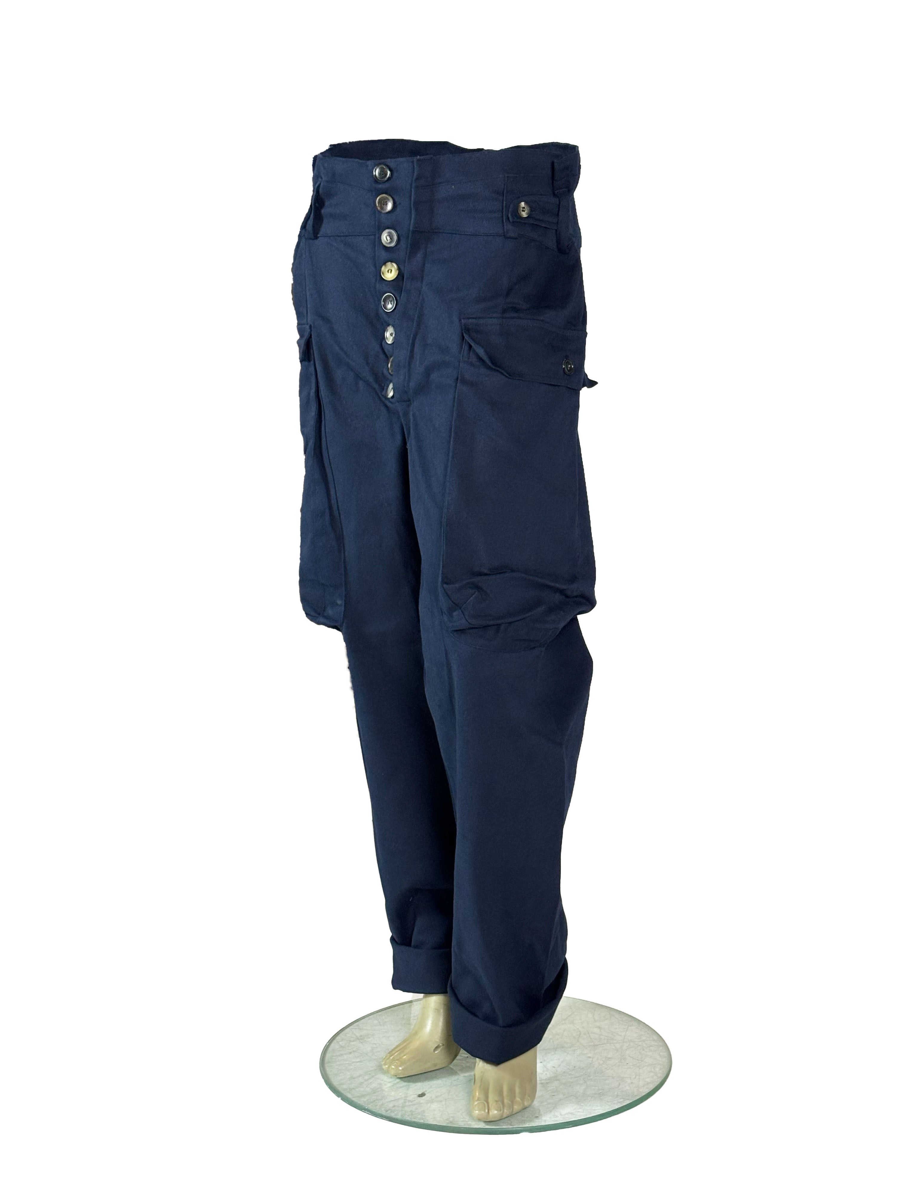 In this dark blue version, the trousers take on a deeper and more grounded workwear character, with a calm and almost uniform-like presence.