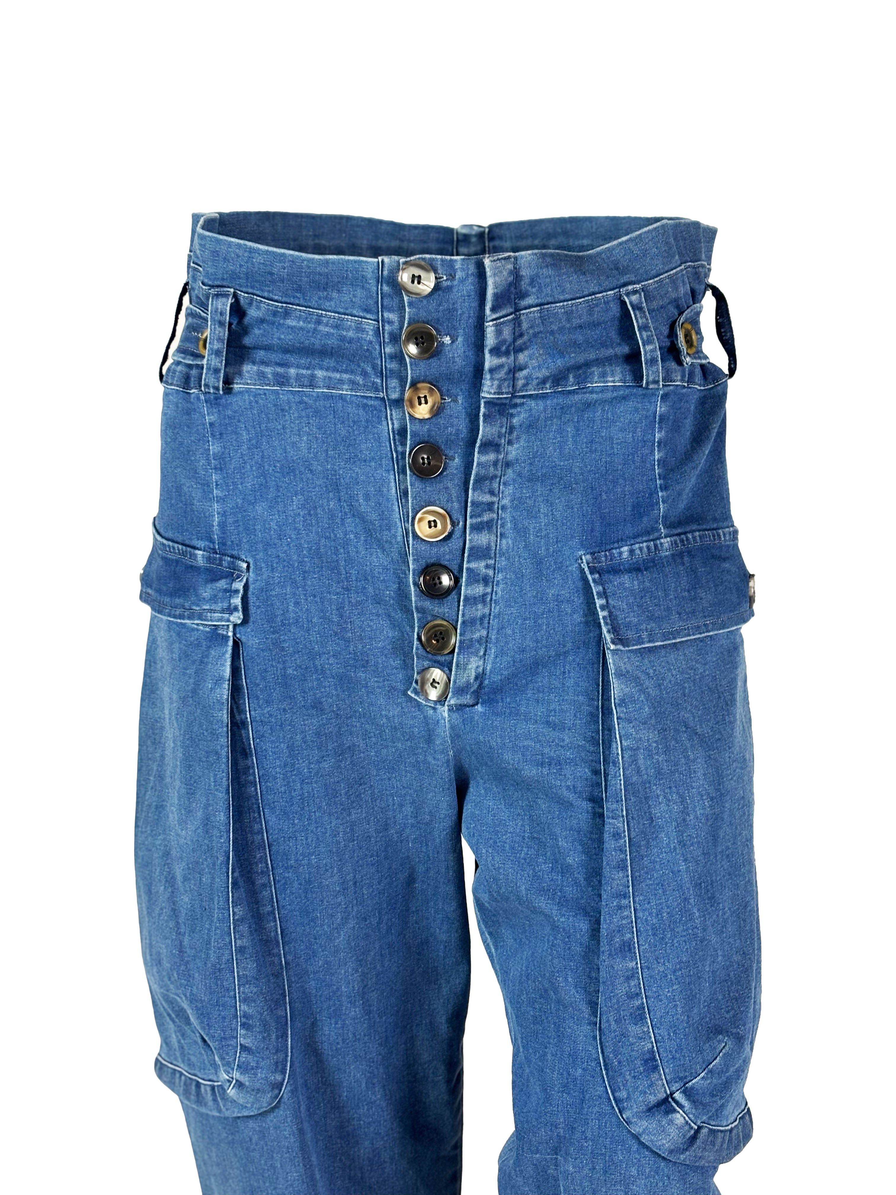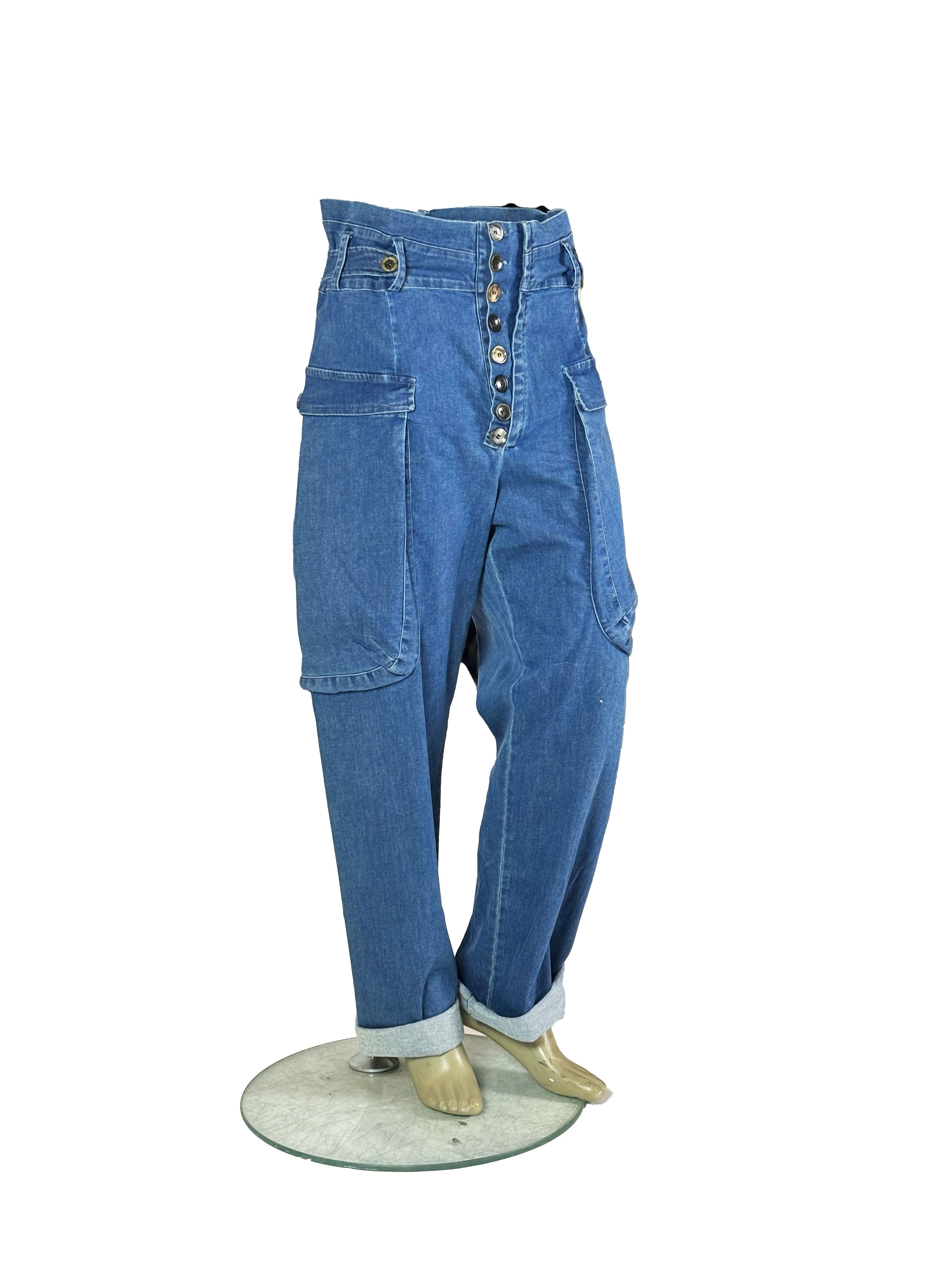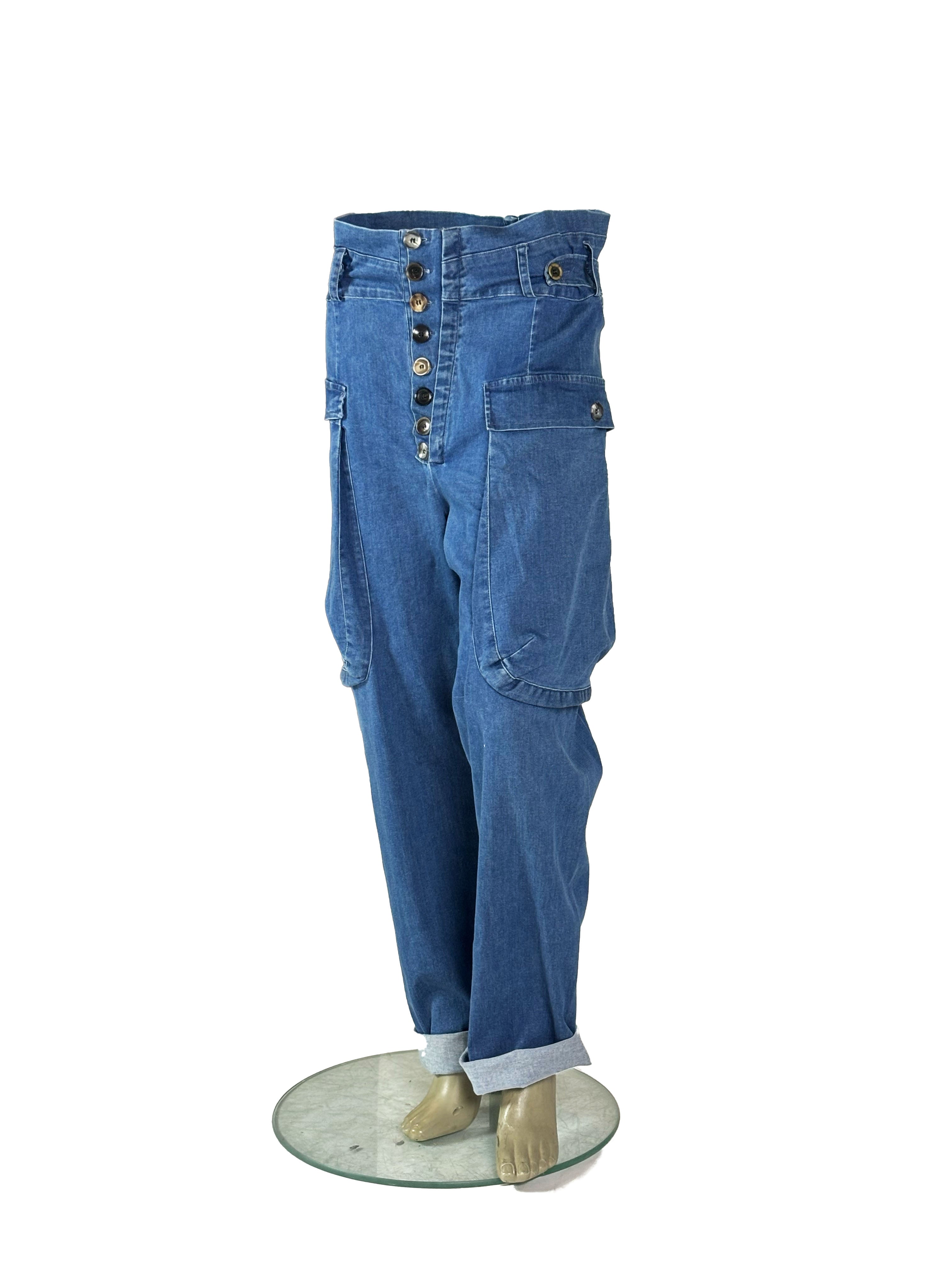 In this denim blue version, the trousers take on a calm and classic workwear character, rooted in traditional utility aesthetics.