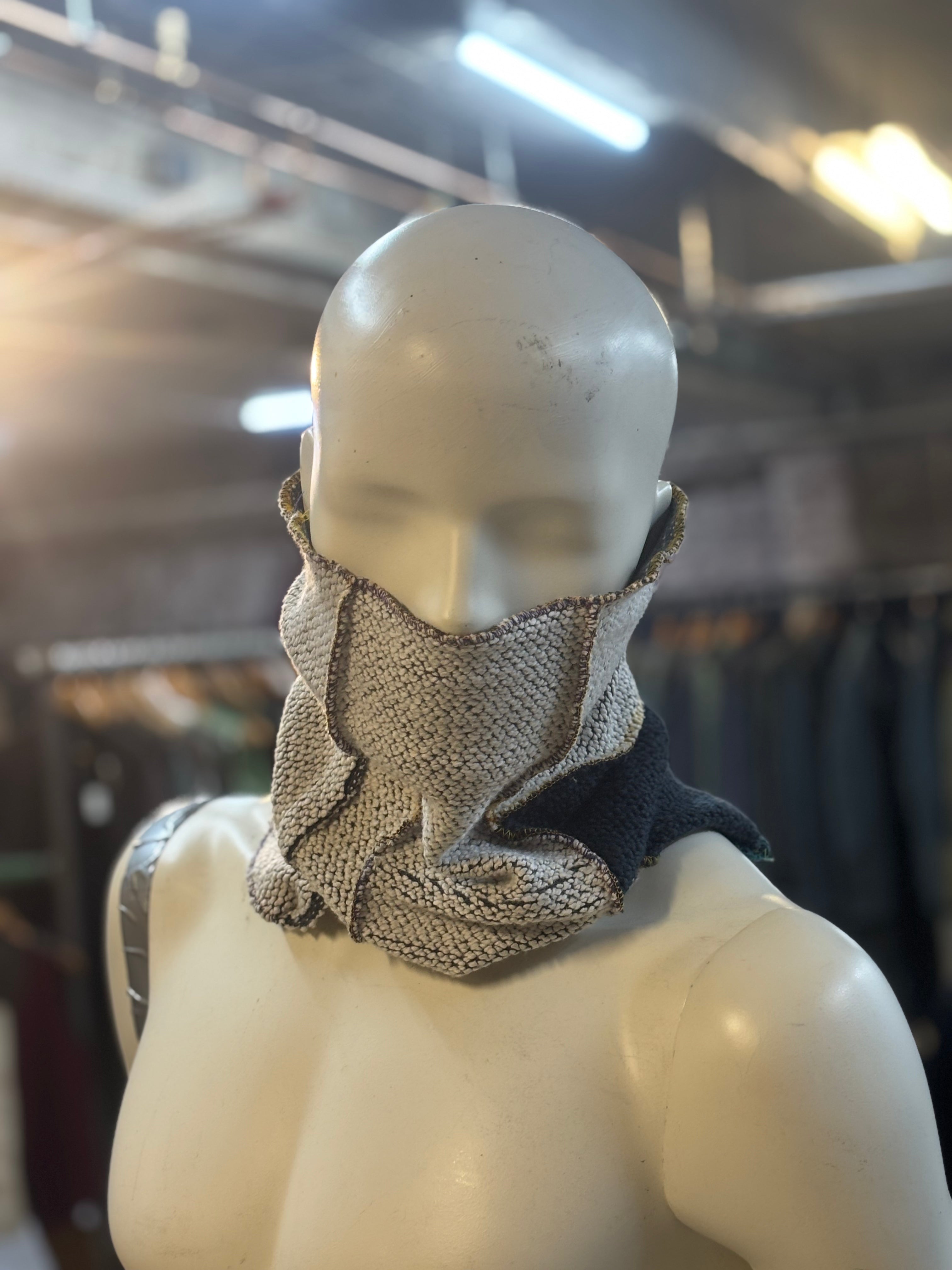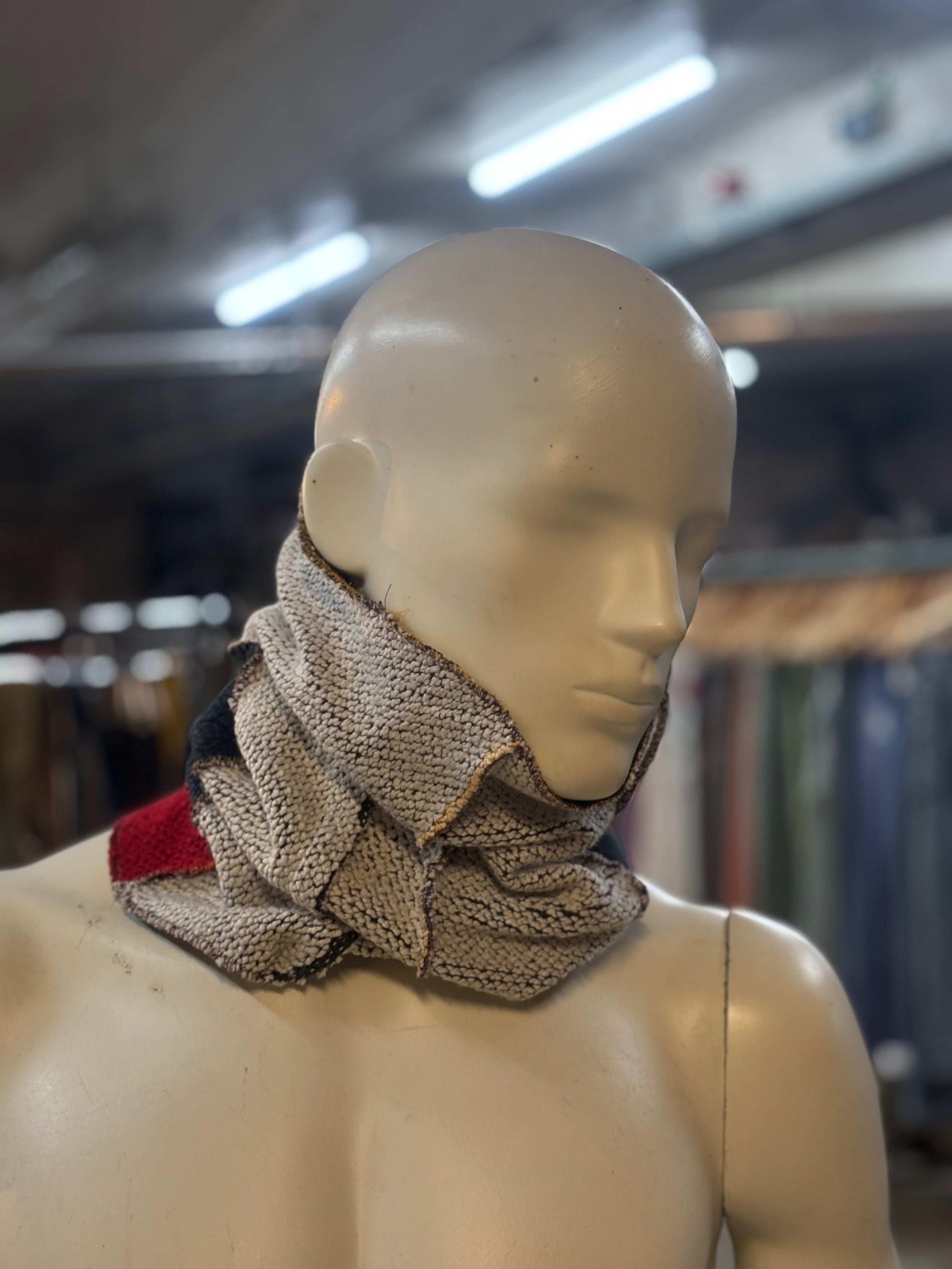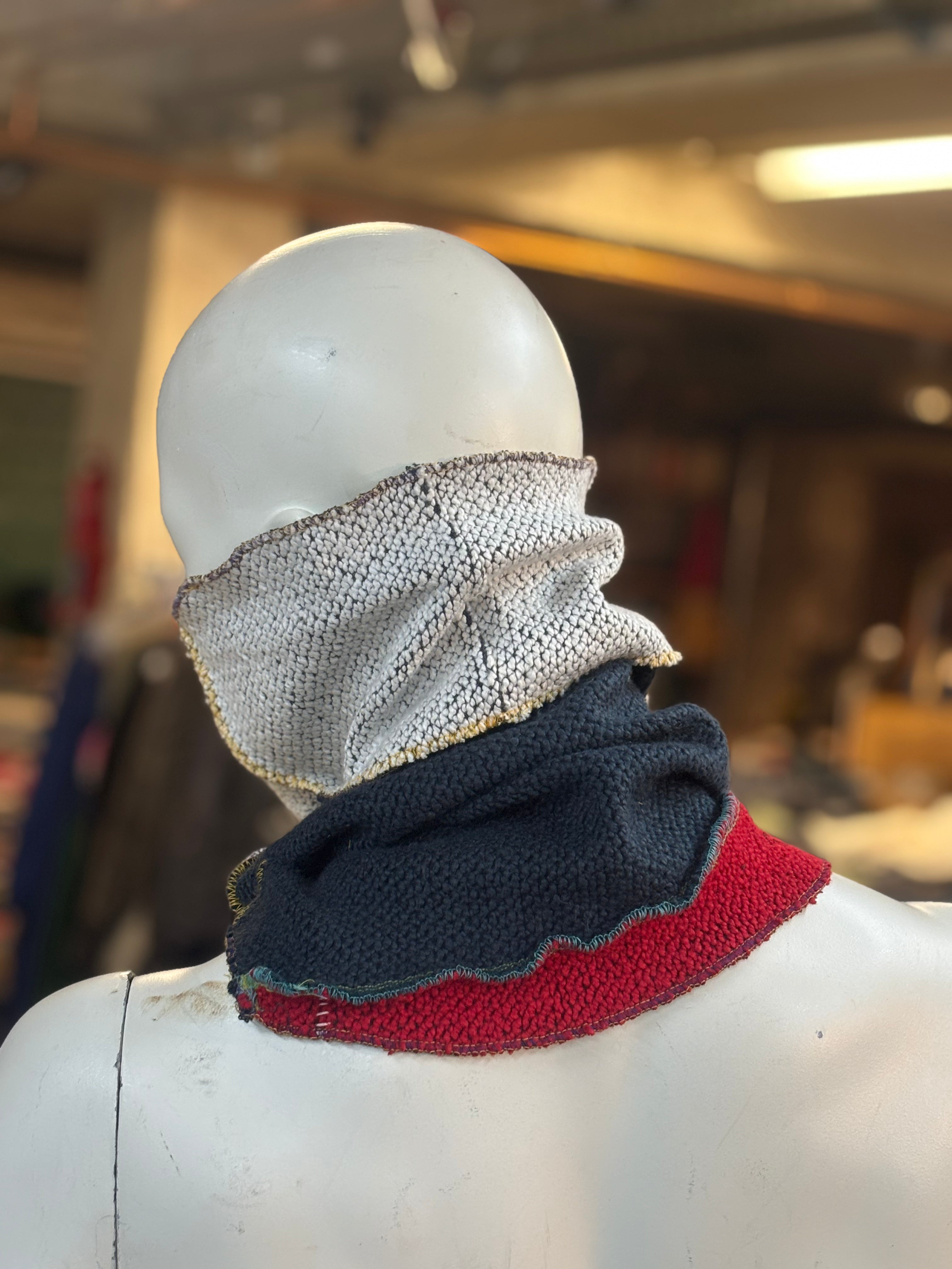 Crafted from a curated mix of fabrics, this neck warmer blends functionality with an artisanal, one-of-a-kind aesthetic. Each piece combines different textures — from soft knits to structured woven materials — creating a unique feel and visual character.